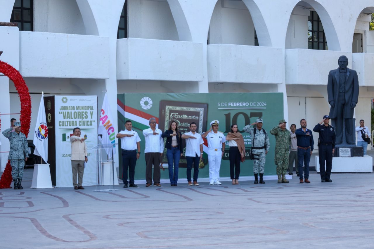 “Hoy conmemoramos 107 años de la Constitución Política, la ley que nos rige como mexicanos, bajo los principios de igualdad y justicia social, que nos da identidad y cohesión como nación. Honramos la lucha de quienes soñaron con un México mejor, con libertades, con derechos y oportunidades para todas y todos, ese México que nos llena de orgullo y cuya transformación la seguimos haciendo día a día, unidos”, enfatizó la Primera Autoridad Municipal.
