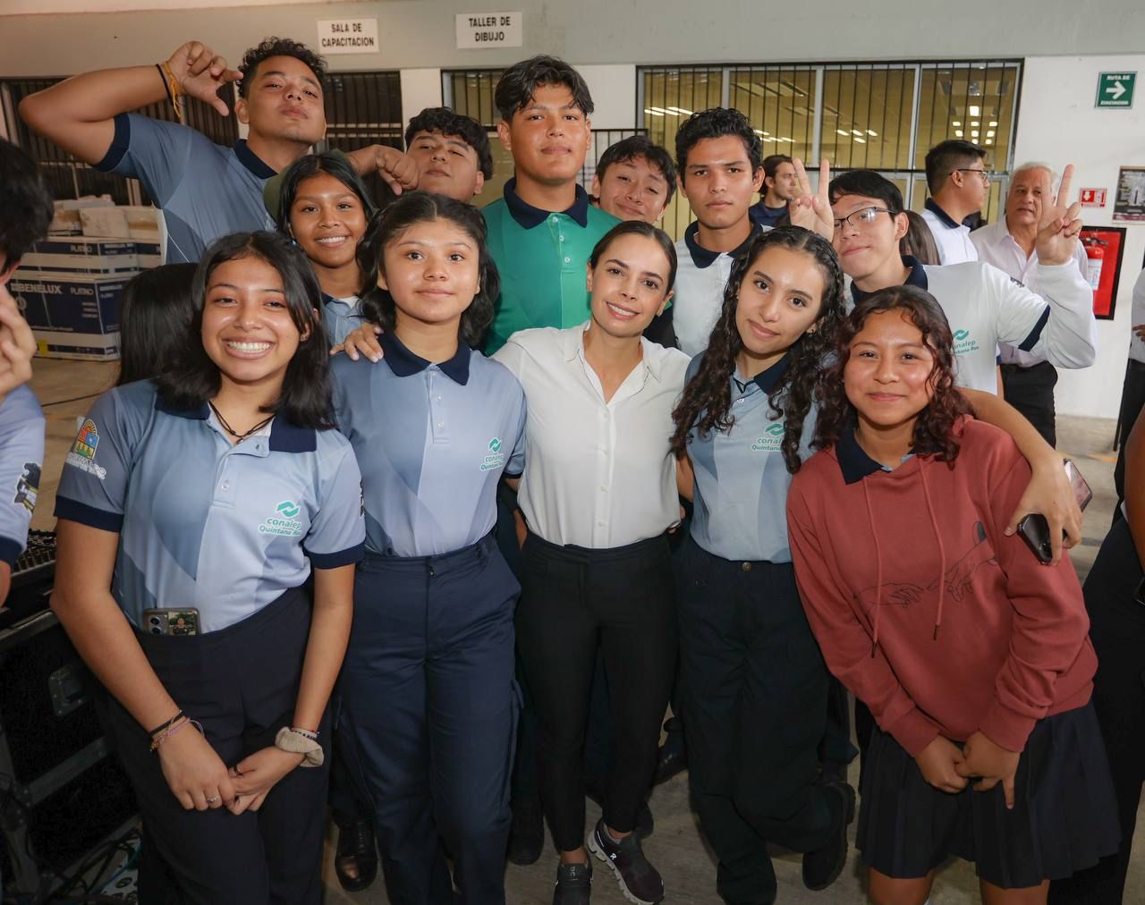 “La paz se construye con la colaboración, con el trabajo en equipo, con la juventud, ahí se construye la paz. Todos coincidimos que queremos vivir en un Cancún en paz, en un Cancún seguro, entonces todos tenemos que ser corresponsables con ello”, expresó a los alumnos, quienes desde su arribo la recibieron con aplausos.
