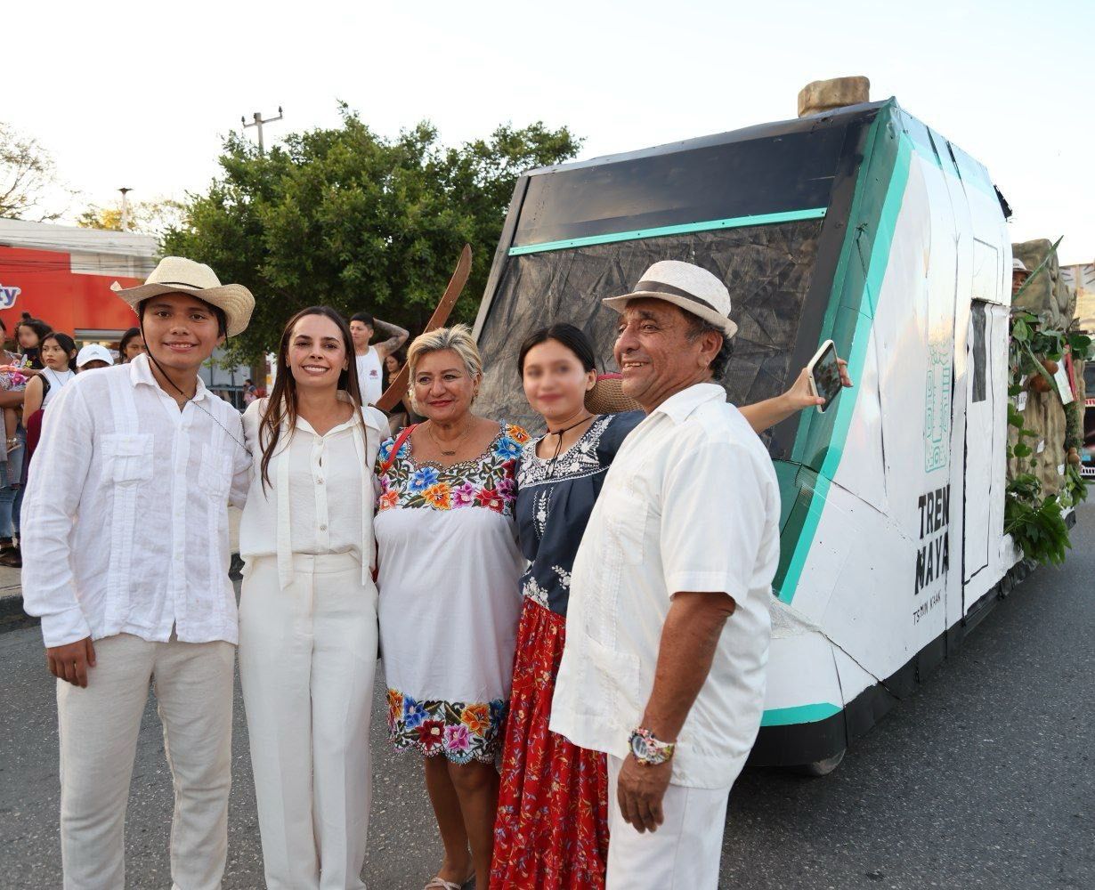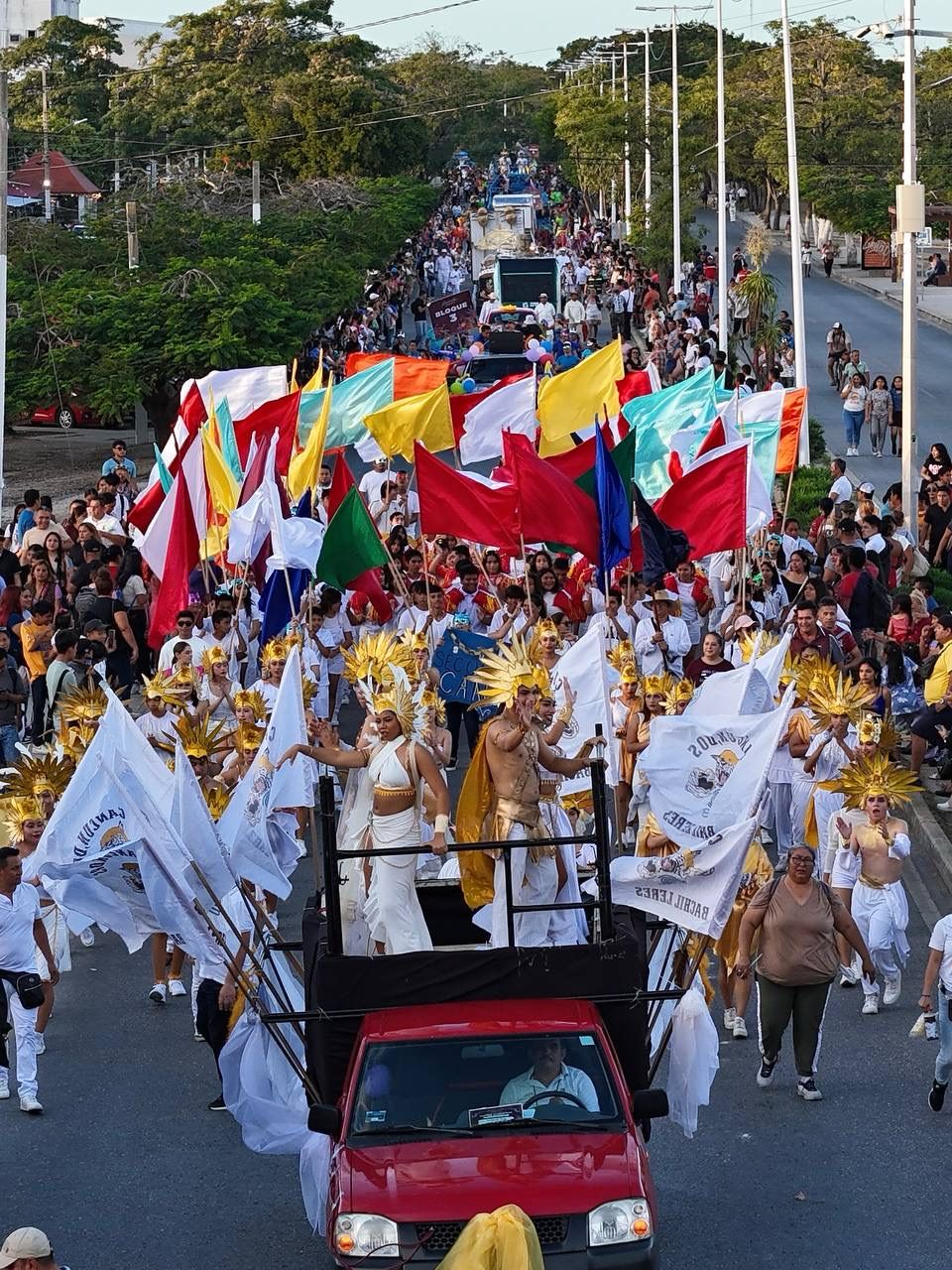 En los diferentes bloques se observó la entusiasta participación de los reyes y reinas de las seis categorías, comparsas también de diferentes rangos de edad desde infantiles hasta adultos, asociaciones civiles, academias de baile, escuelas de nivel medio superior, entre otros asistentes, mientras que al frente de algunos contingentes se pudieron observar carros alegóricos decorados de forma creativa como fue uno del Tren Maya, obra emblemática del Gobierno de México.