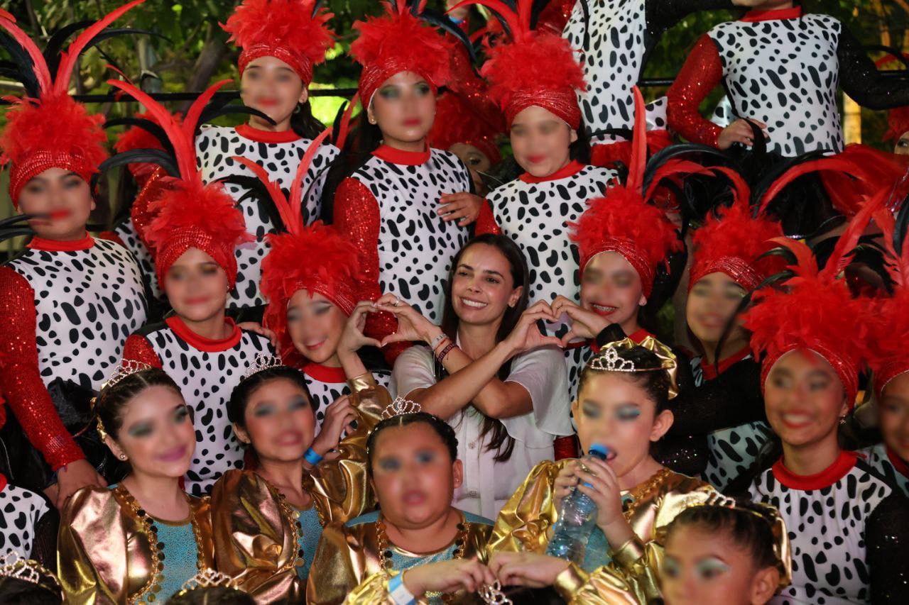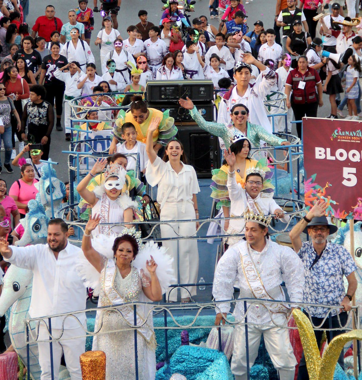 “Vamos a seguirnos uniendo como familia en el carnaval, que todos los días hagamos la diferencia cada uno de nosotros con buenas acciones como cancunenses y que pongamos el ejemplo. Que disfruten mucho de esta fiesta”, expresó Ana Paty Peralta a su llegada al escenario principal, en el que bailó con niñas y niños de las comparsas en ese rango de edad.