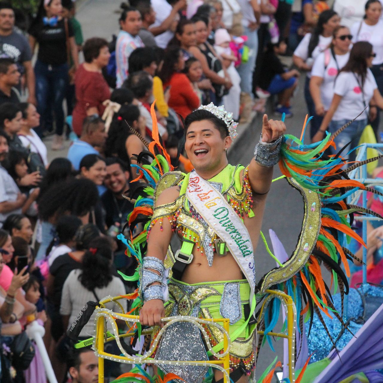 Cada uno de esos segmentos fue encabezado precisamente por los máximos soberanos de la fiesta carnestolenda: los reyes y reinas de las categorías Infantil, Juvenil, Soberanos, Adultos Mayores, Diversidad Sexual y Personas con Discapacidad, que fueron acompañados por sus propias comparsas, los grupos de baile competidores y hasta las porras compuestas por los padres de familia.