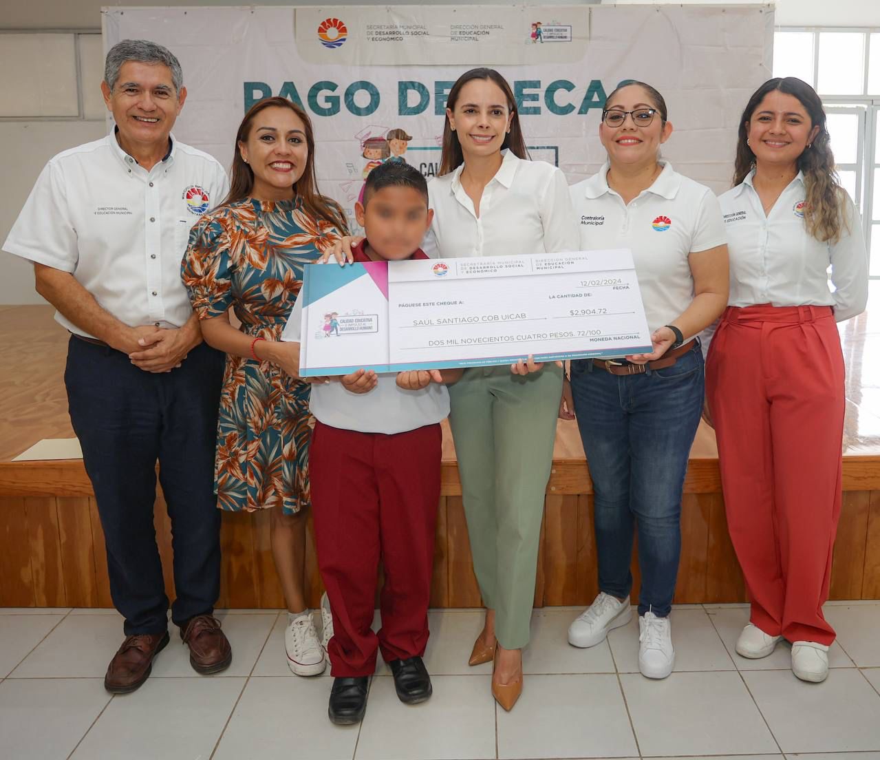 Cancún, Q. R., a 12 de febrero de 2024.- De acuerdo con la programación, el Ayuntamiento de Benito Juárez, a través de la Secretaría de Desarrollo Social y Económico, y la Dirección de Educación Municipal, llevó a cabo la última fecha del pago de becas, correspondiente al primer periodo del ciclo escolar 2023-2024, que fue para mil 841 alumnos de nivel primaria.
