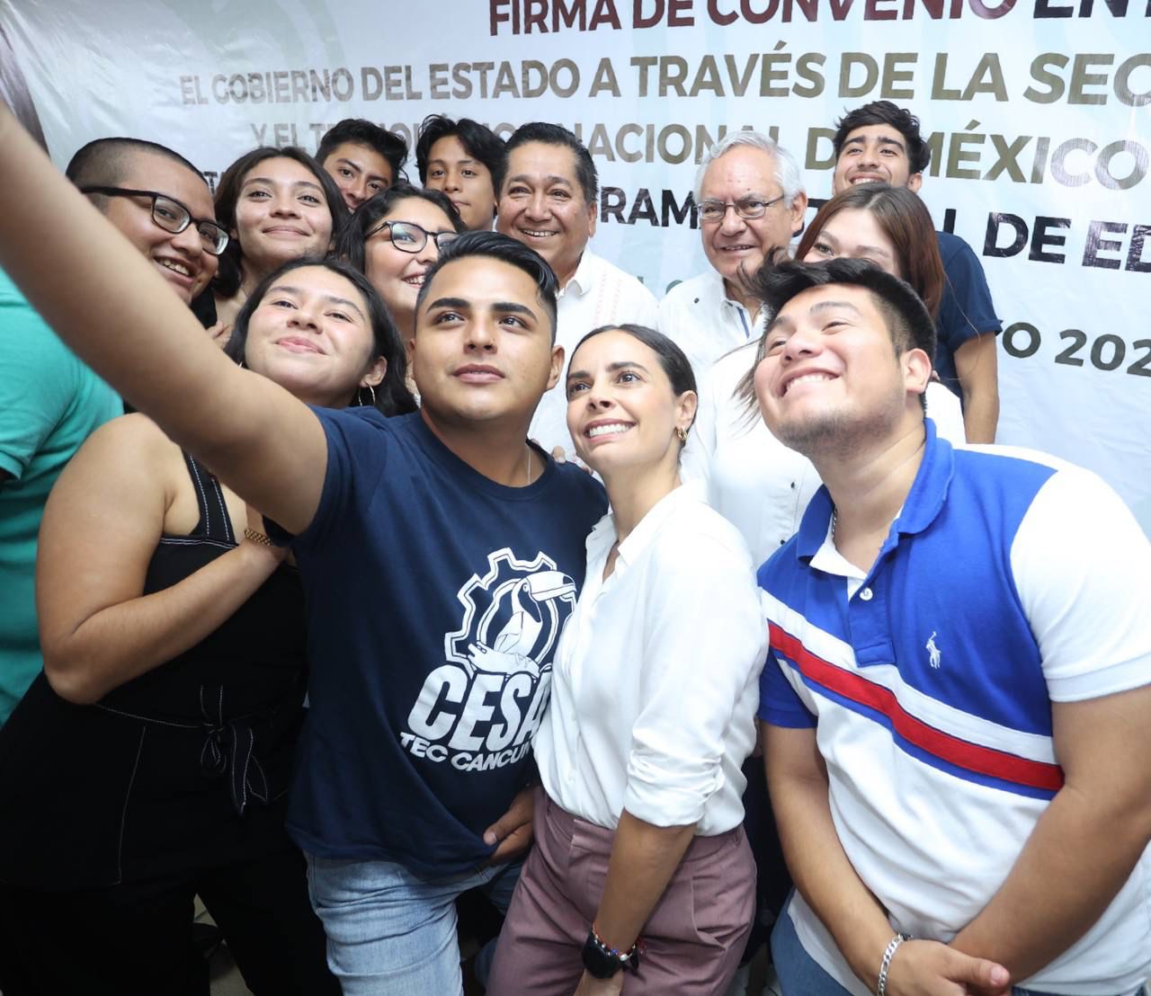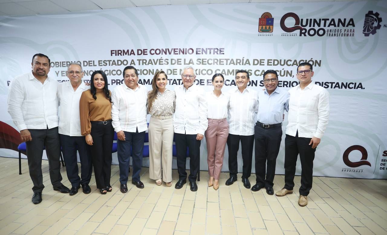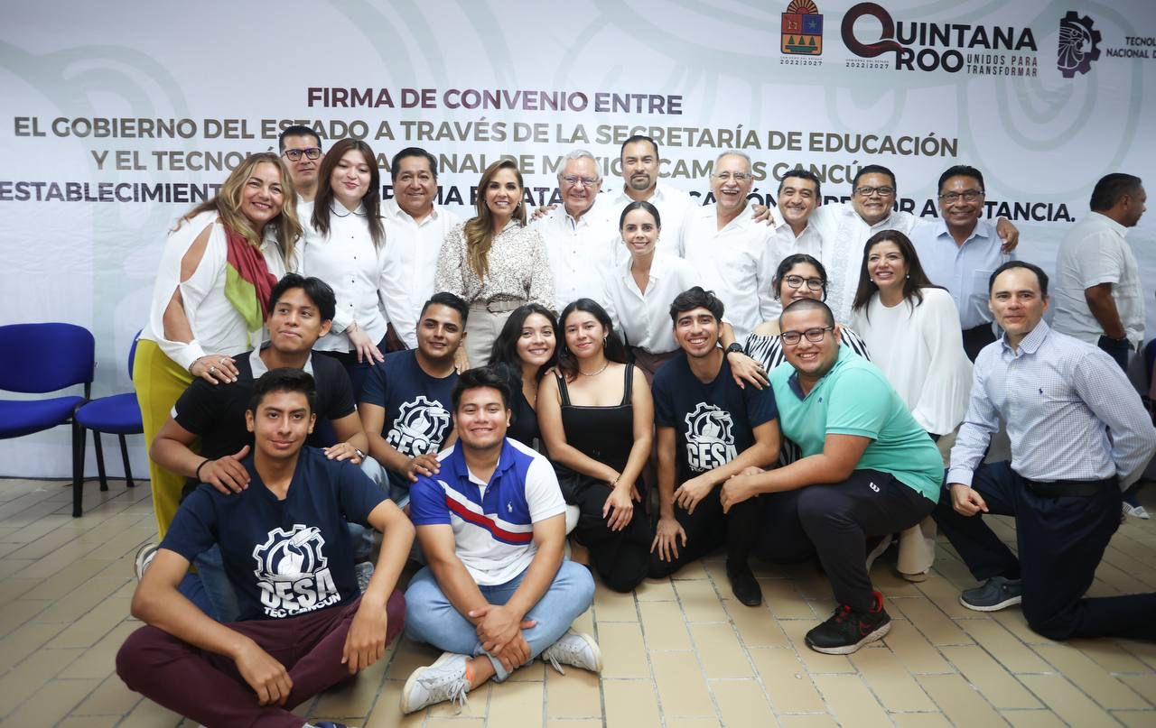 Como parte del evento, la Presidenta Municipal atestiguó la firma del convenio correspondiente, además del Nuevo Acuerdo por el Bienestar y el Desarrollo, en el que participaron la Secretaría de Educación de Quintana Roo, la Gobernadora y el titular nacional de dicha institución académica, así como la entrega del diseño de un tríptico con la nueva oferta que ofrecerán a los jóvenes.