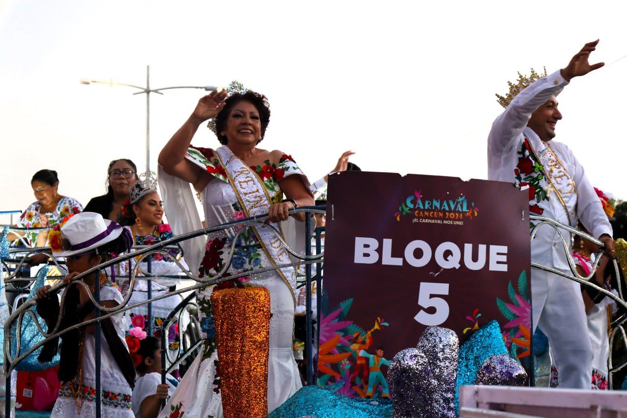 Cancún, Q. R., a 13 de febrero de 2024.- El "Carnaval Cancún 2024" continúa con la fiesta familiar cautivado a cancunenses y turistas en su quinto día de celebración, con una serie de eventos y espectáculos que han llenado de entusiasmo y color la Zona Fundacional de la ciudad; el desfile, la competencia de comparsas, la presentación de los reyes y reinas de varias categorías y los conciertos gratuitos han sido un rotundo éxito, atrayendo a personas de todas las edades y procedencias.