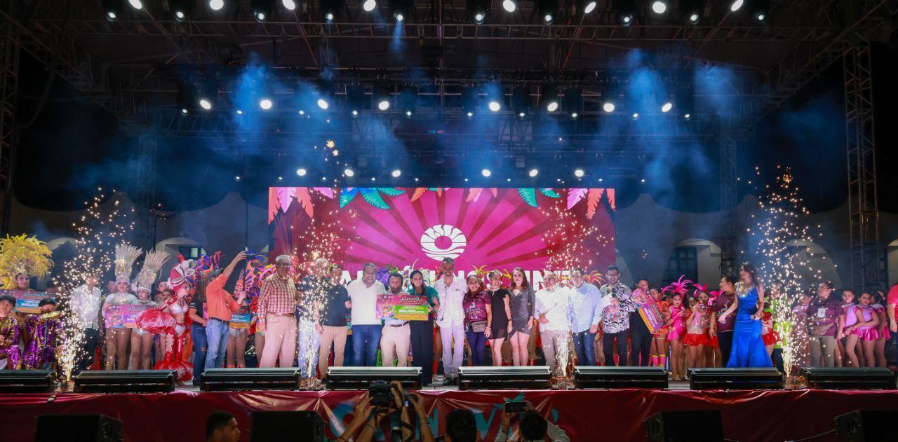 Además, para enmarcar esta actividad llena de alegría, la Primera Autoridad Municipal, junto al titular del Instituto Municipal de la Cultura y las Artes, Carlos López Jiménez, y otras autoridades municipales, entre vítores y aplausos premiaron a las comparsas ganadoras en la categoría infantil, juvenil, libre y a los carros alegóricos.
