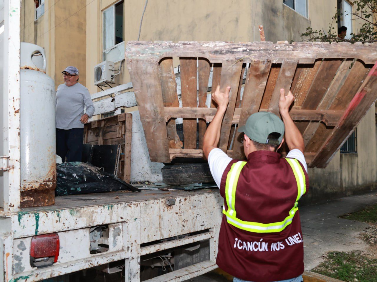 Cancún, Q. R., a 19 de febrero de 2024.- Autoridades del Ayuntamiento de Benito Juárez, acudieron a la Supermanzana 251, Fraccionamiento Paseos del Mar, para realizar una jornada de descacharrización a fin de prevenir la formación de criaderos de vectores y promover el trabajo en conjunto con la ciudadanía, para atender dicha problemática.