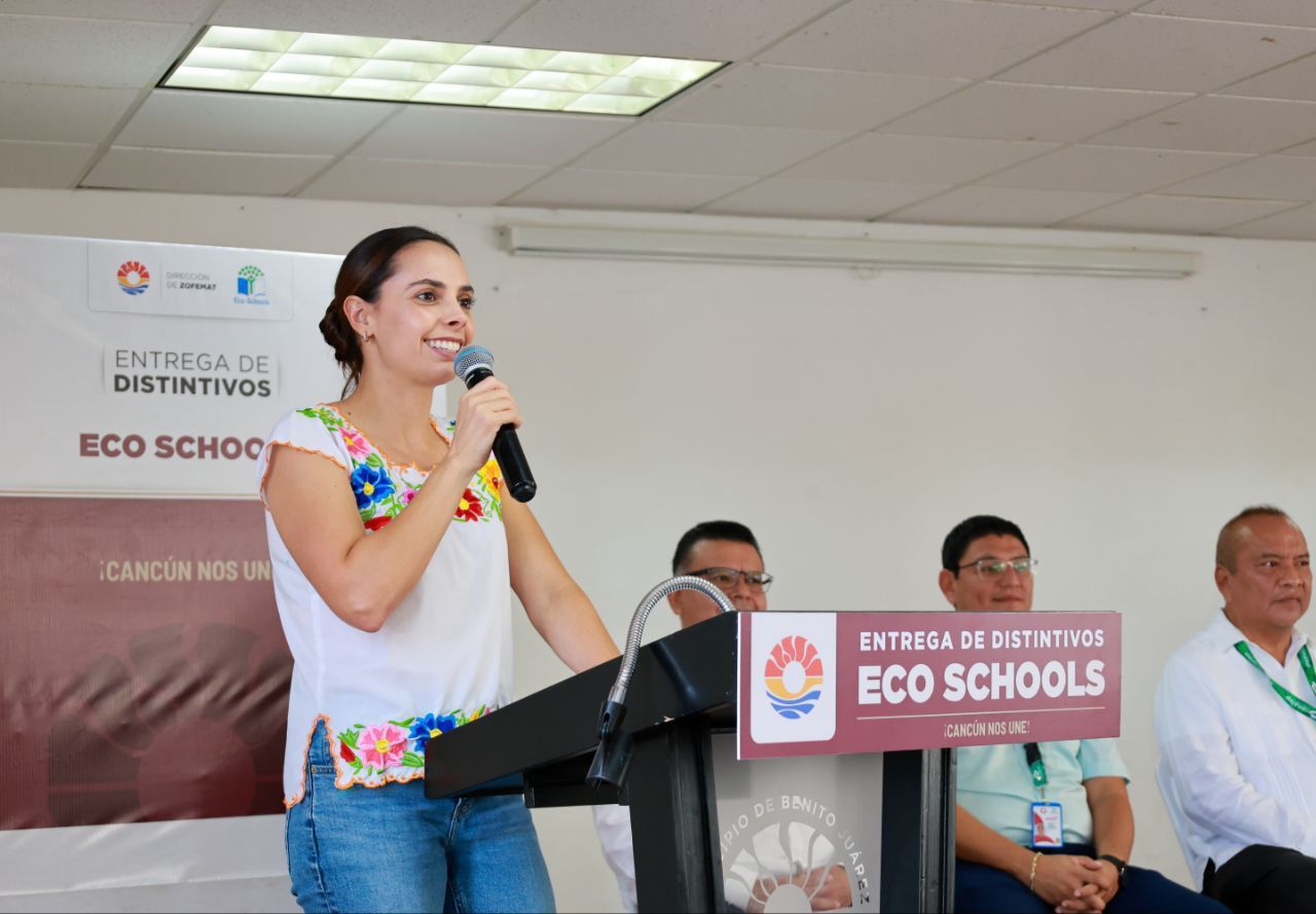 Cancún, Q. R., a 21 de febrero de 2024.- En un trabajo en conjunto entre gobierno e instituciones académicas en pro del medio ambiente, autoridades del Ayuntamiento de Benito Juárez entregaron siete distintivos del programa internacional “Eco-Schools” a escuelas en Cancún, emitidos por la Fundación para la Educación Ambiental (FEE) en México, por mejorar su entorno y protegerlo activamente.
