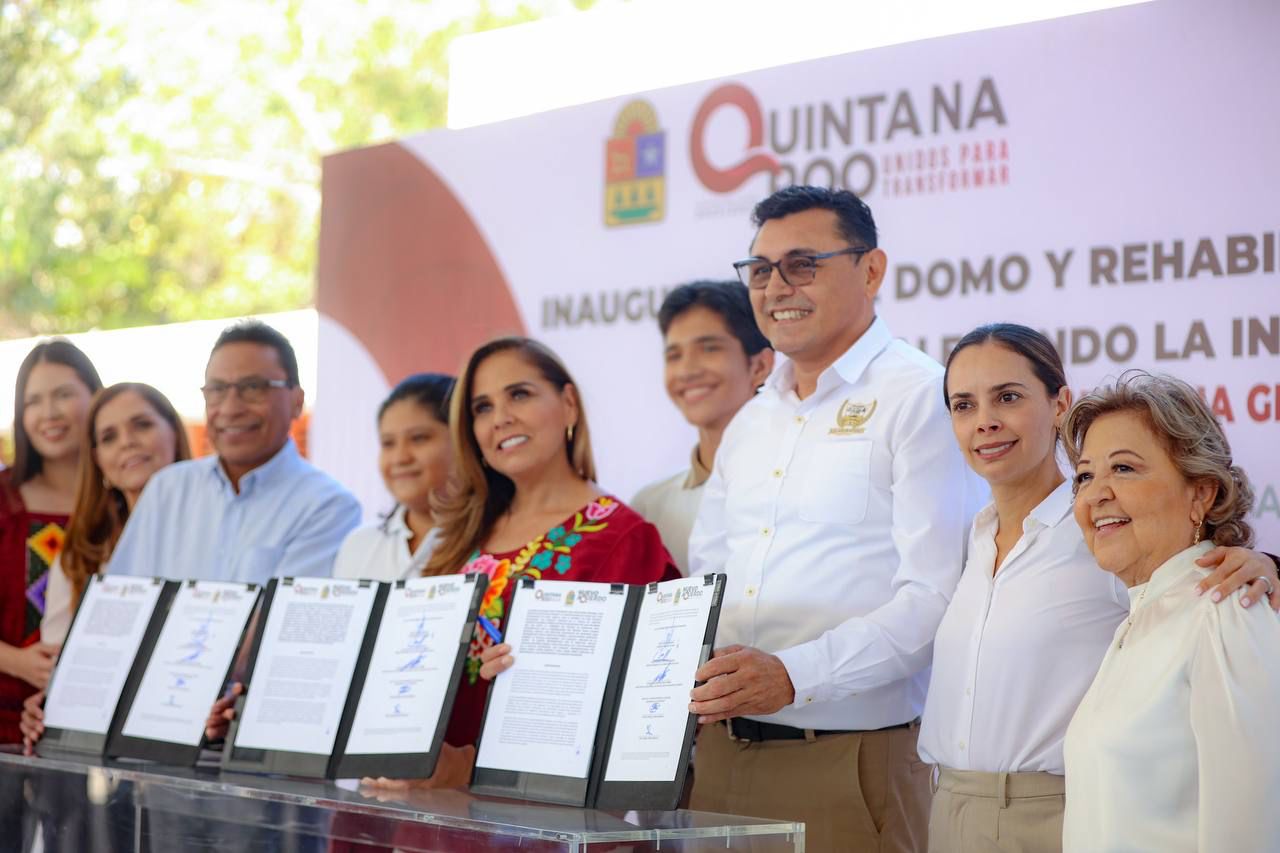 También se llevó a cabo la respectiva develación de cada una de las placas conmemorativas correspondientes a las obras, así como la firma del Nuevo Acuerdo por el Bienestar y Desarrollo de Quintana Roo entre la Gobernadora, el secretario de Educación en la entidad, Carlos Manuel Gorocica Moreno, y los directores de cada institución.