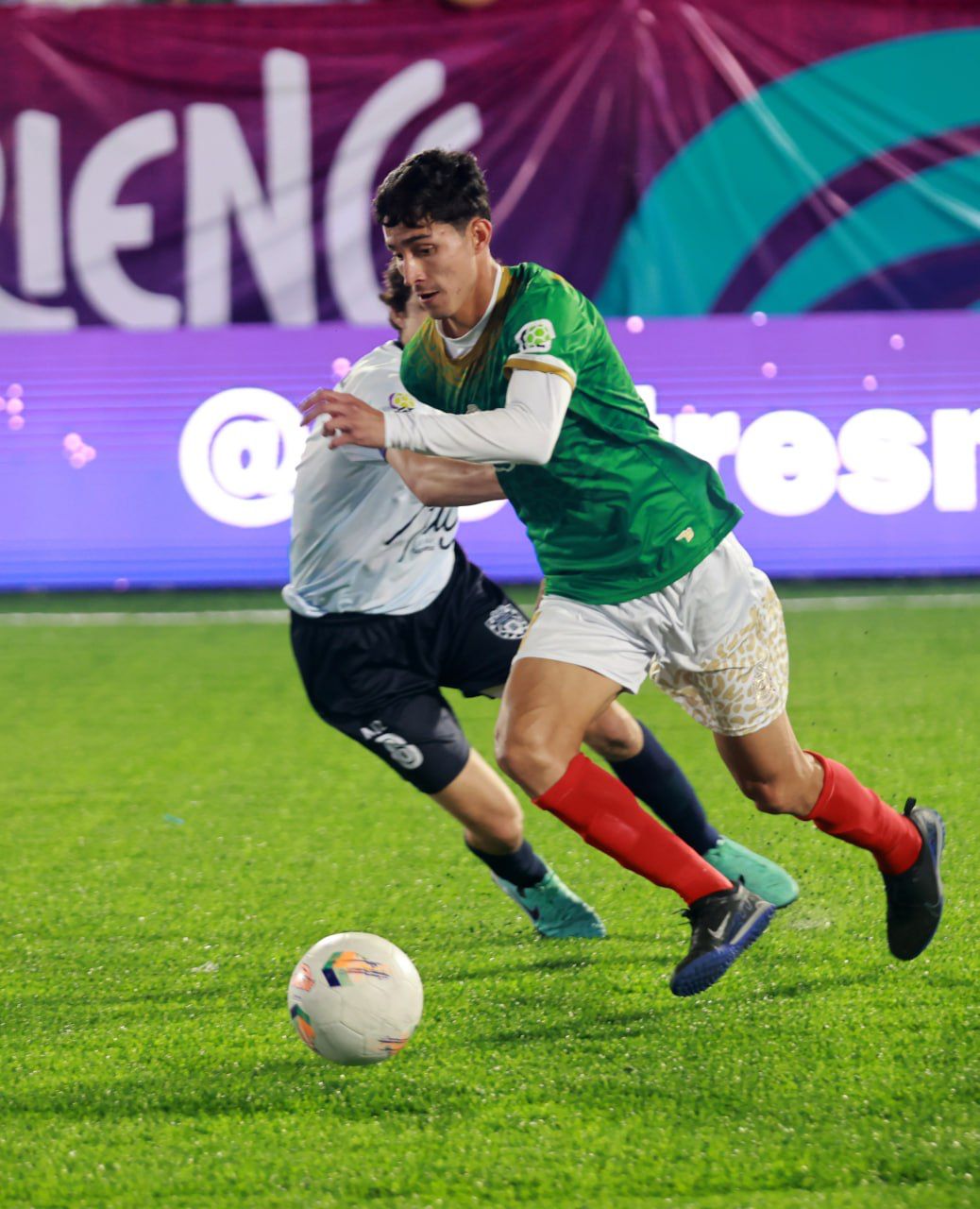 Durante el tiempo de descanso, los organizadores hicieron entrega oficial de la bandera de Socca a los representantes de la selección de Omán, equipo que será anfitrión en la Copa Mundial Socca 2024.
