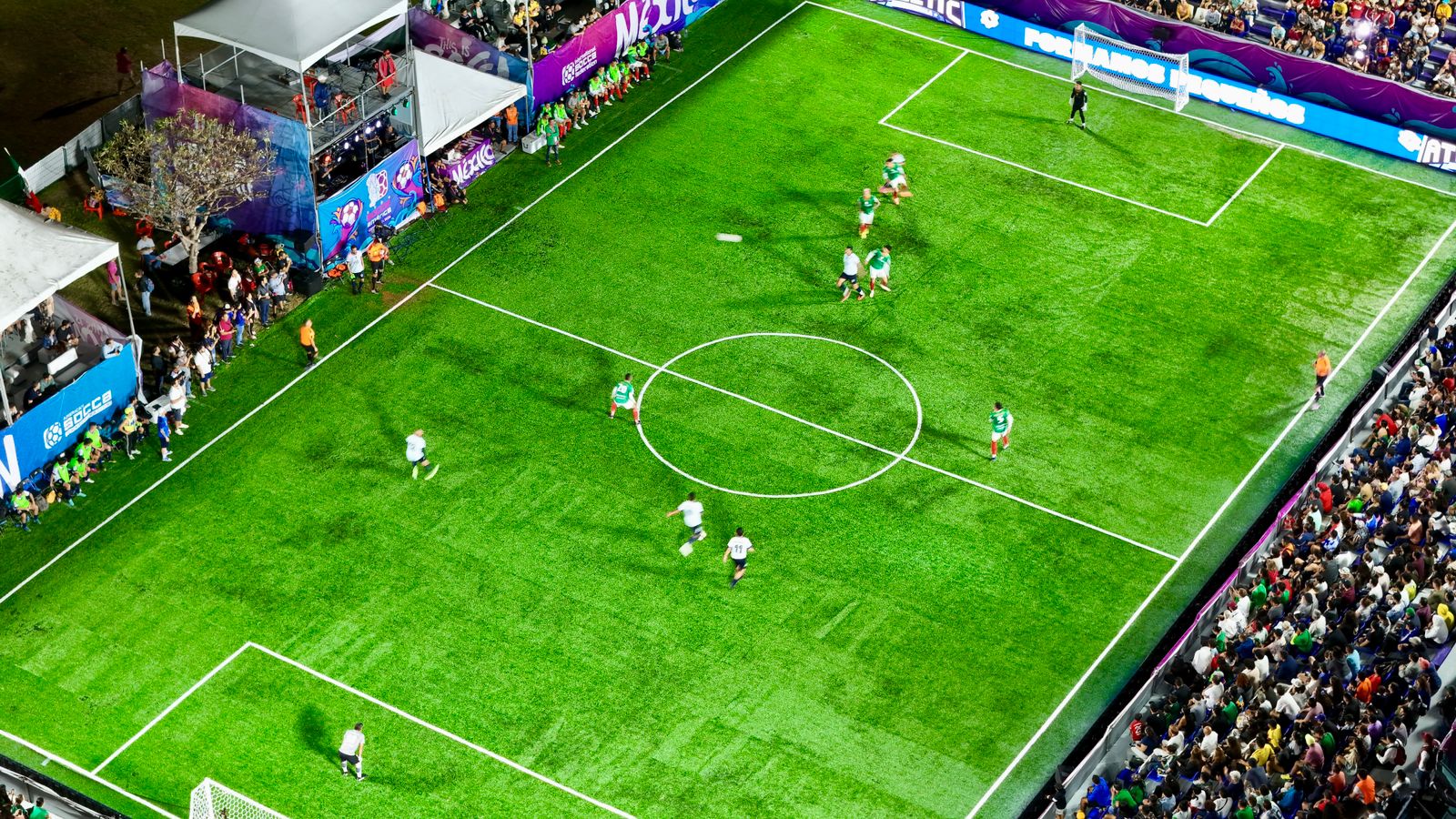Durante el juego, la diferencia llegó de la zurda de Juan Carlos Martínez al minuto 14 del primer tiempo, llevando al sexteto local con la ventaja al medio tiempo, tras concluir los primeros 20 minutos en un dramático intercambio de jugadas, en donde la porra mexicana se hizo notar entonando el clásico cántico “Cielito lindo”.