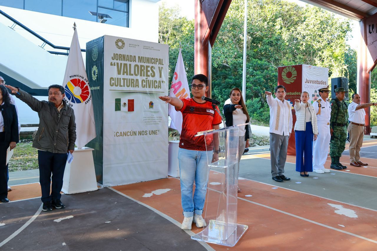 cívico, el alumno Kevin Garduza Arcos de la Licenciatura de Administración y