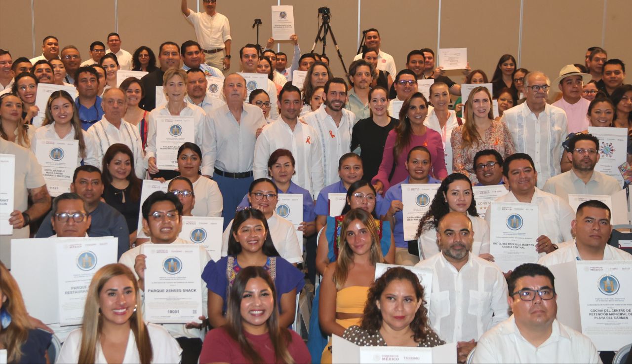 Cancún, Q. R., a 25 de junio de 2024.- El Encargado de Despacho de la Presidencia Municipal de Benito Juárez, Pablo Gutiérrez Fernández, participó en la entrega de mil 324 reconocimientos en total de: estándares de calidad turística, clasificación hotelera y acreditaciones de guías de turistas, encabezada por la gobernadora Mara Lezama, para distinguir a las empresas que han obtenido esa mejora continua, calidad y excelencia en los servicios que ofrecen a los visitantes.