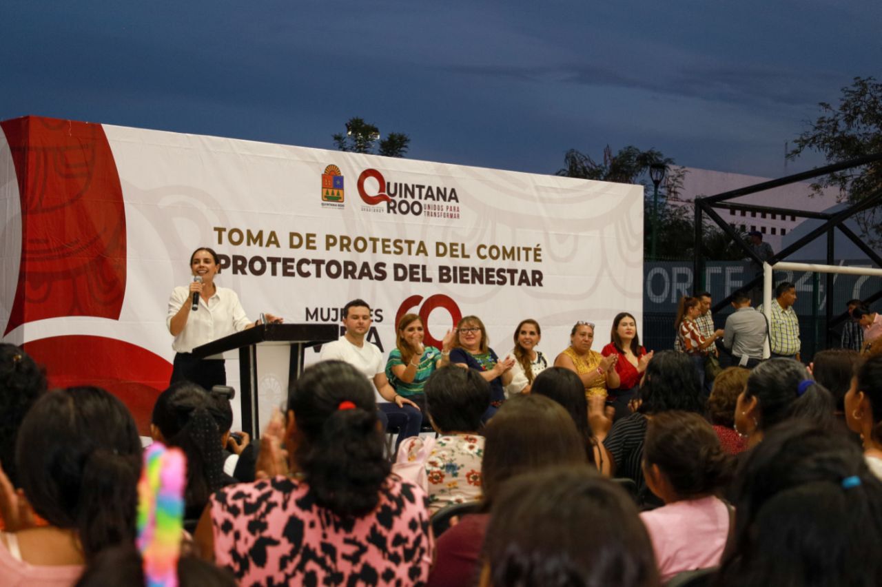 Durante el evento realizado en el Domo Deportivo “Toro Valenzuela” de la Supermanzana 70, la Primera Autoridad Municipal se congratuló por las acciones que se realizan desde el gobierno del estado en beneficio de las y los cancunenses, destacando que hoy se formaliza el cuarto de los seis comités de protectoras del Bienestar que se establecerán en la ciudad.
