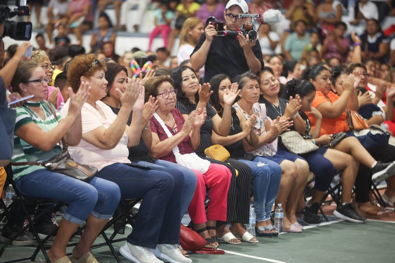 “Quiero felicitar y agradecer mucho a las mujeres que integran este comité, por sumarse al trabajo colectivo. Estoy segura que con su labor, con honradez y transparencia, nos ayudarán a que los programas sociales lleguen a quienes tienen que llegar, que los apoyos alimentarios y monetarios del programa “Mujer es Vida” beneficien a los hogares más necesitados”, comentó Ana Paty Peralta, en su calidad de anfitriona, ante cientos de mujeres que se dieron cita en el recinto deportivo.