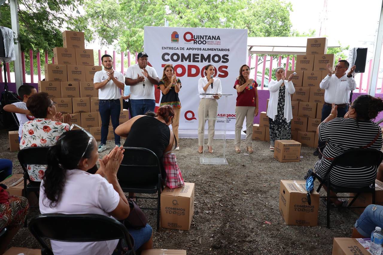 “Más de 28 mil personas se benefician a través de este programa ‘Comemos Tod@s’, liderado por la Gobernadora. Este es un gobierno que hace las cosas diferentes y hoy se ve en esta entrega de apoyos. Llevar a la mesa alimentos nutritivos y una dieta más completa para sus hijas, para sus hijos y adultos mayores, es primordial, ya que es un derecho universal que se debe cumplir sin distinción”, señaló en calidad de anfitriona en Benito Juárez.