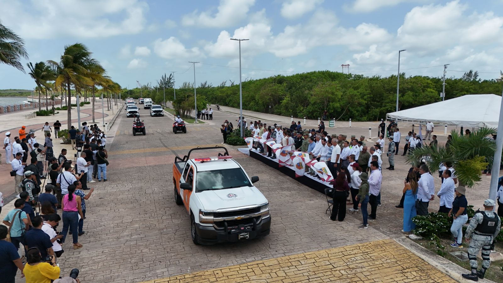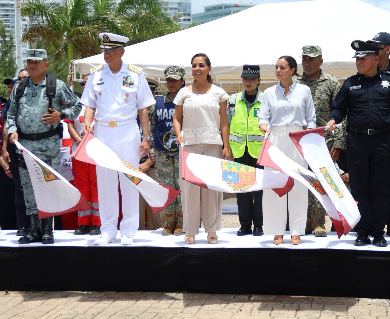 Cancún, Q. R., a 12 de julio de 2024.- “Con este banderazo del Operativo de Seguridad Vacacional de Verano 2024, como gobierno municipal refrendamos nuestro compromiso con el trabajo colaborativo entre los tres niveles de gobierno, siempre de la mano de la estrategia de nuestra gobernadora Mara Lezama, para garantizar la seguridad e integridad de las y los cancunenses y de nuestros visitantes que arriban a este destino”, afirmó la Presidenta Municipal, Ana Paty Peralta.