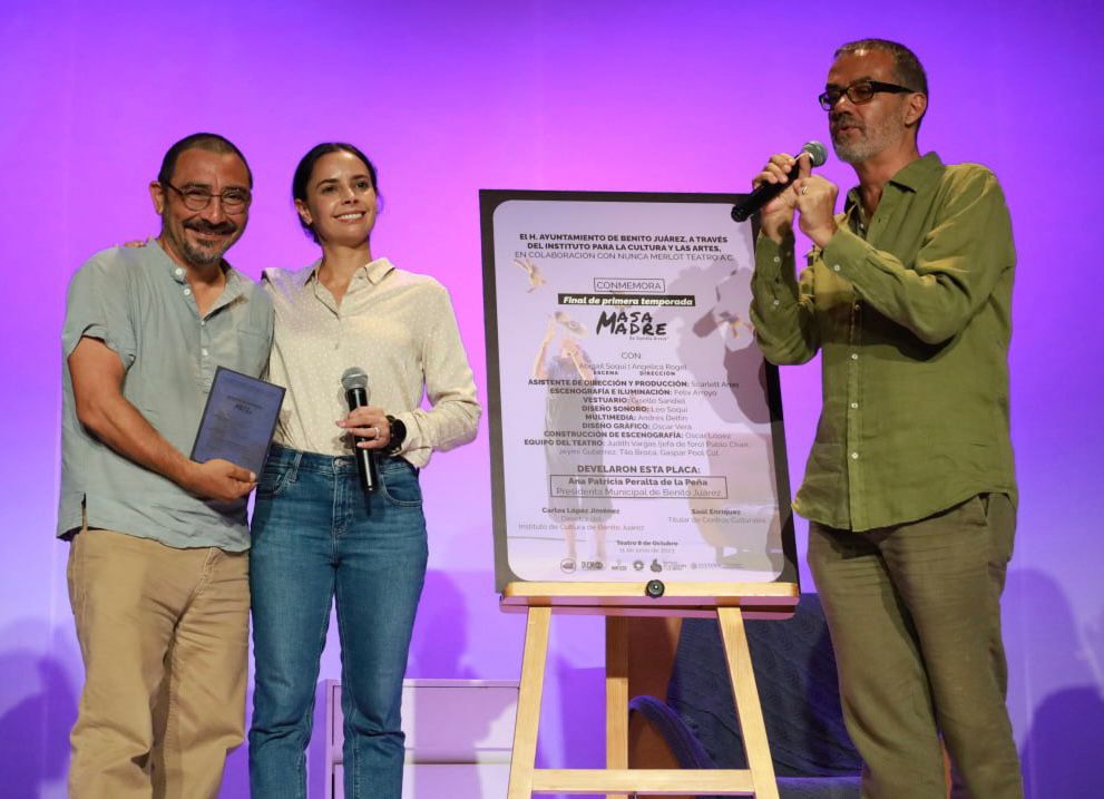 Con motivo al cierre de temporada y de forma conmemorativa, el Ayuntamiento de Benito Juárez en colaboración con Nunca Merlot Teatro, realizó una placa a la importante obra, además de darle un reconocimiento a los artífices del proyecto, encabezados por la actriz, Abigail Soqui.