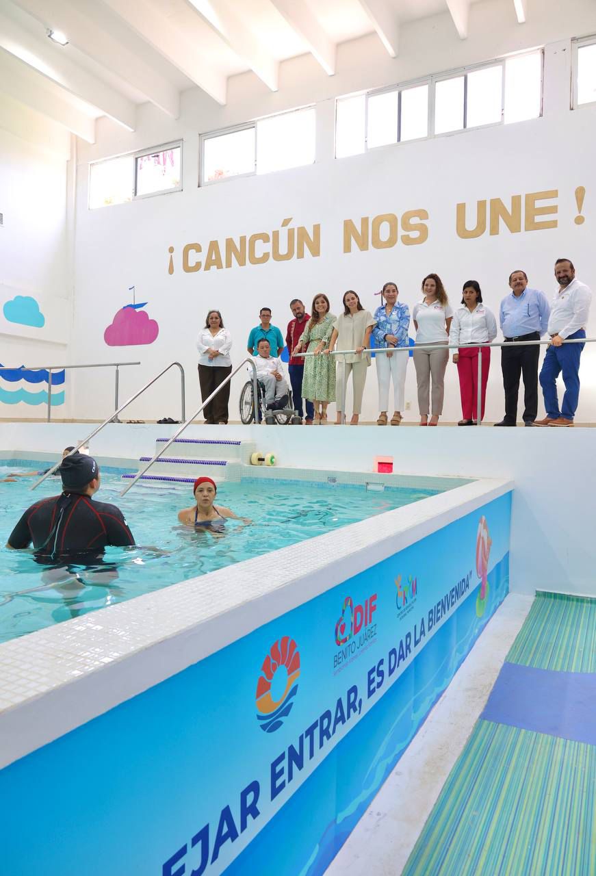 Cancún Q. R., a 24 de julio de 2024.- En un paso más por la construcción de un Cancún más inclusivo e igualitario, la Presidenta Municipal, Ana Paty Peralta, reinauguró junto a la presidenta honoraria del DIF Quintana Roo, Verónica Lezama Espinosa, el tanque terapéutico, con el que ya se podrá dar nuevamente el servicio de hidroterapia en el Centro de Rehabilitación Integral Municipal (CRIM), ubicado en la Supermanzana 67.