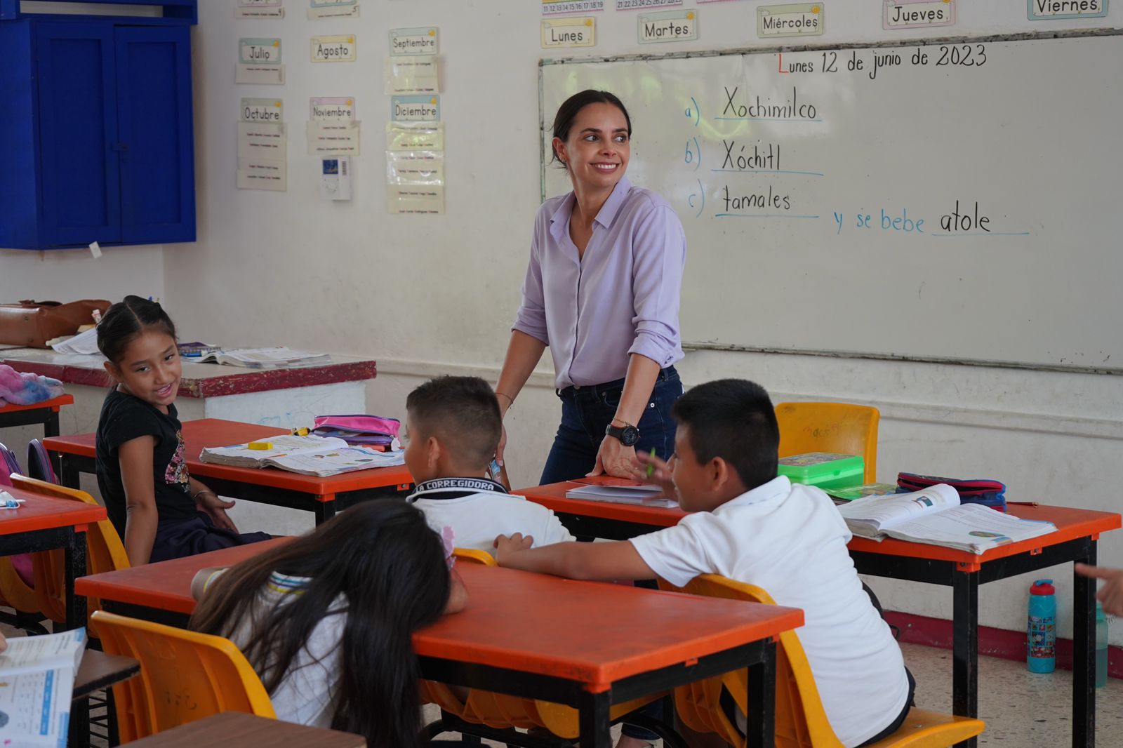 En su paso por los salones, Ana Paty Peralta fue recibida con abrazos y muestras de cariño por parte de los pequeños y para interactuar con ellos, participó en los diferentes talleres, como en el grupo 2°A que recibió una plática de prevención por parte de Bomberos; en el 2°C, una explicación sobre el plato del buen comer; y en el 2°B, en el que se sentó con ellos a leerles el cuento “El señor Conejo”.
