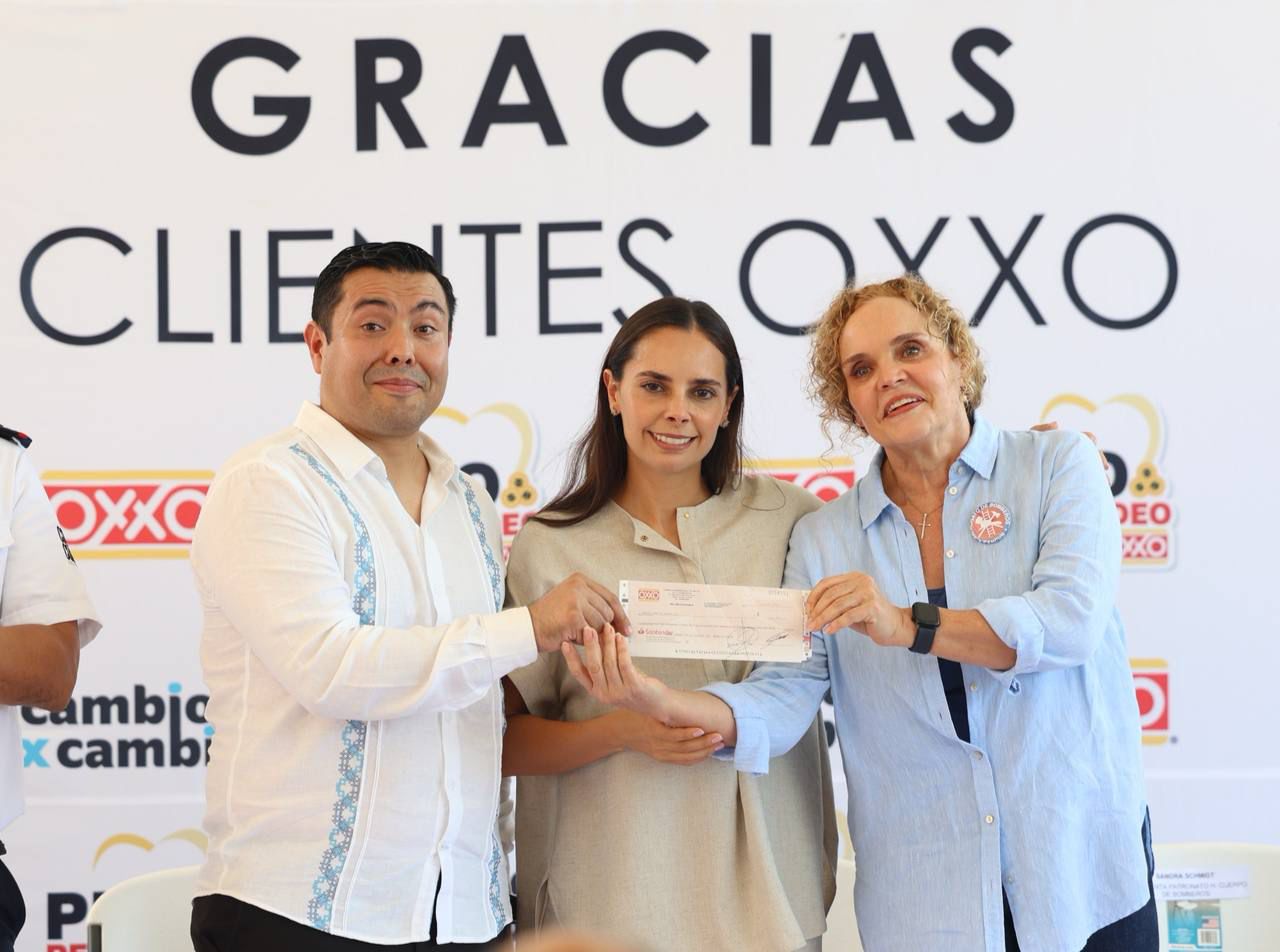 Luego de su mensaje, acompañada del gerente de OXXO Plaza Kukulcán, Adrián Montiel, entregaron reconocimientos a los representantes de las tiendas que más recaudaron del redondeo, que fueron las sucursales: Sands, Chac Mool, Playa Tortugas, Yalmakan y El Faro.