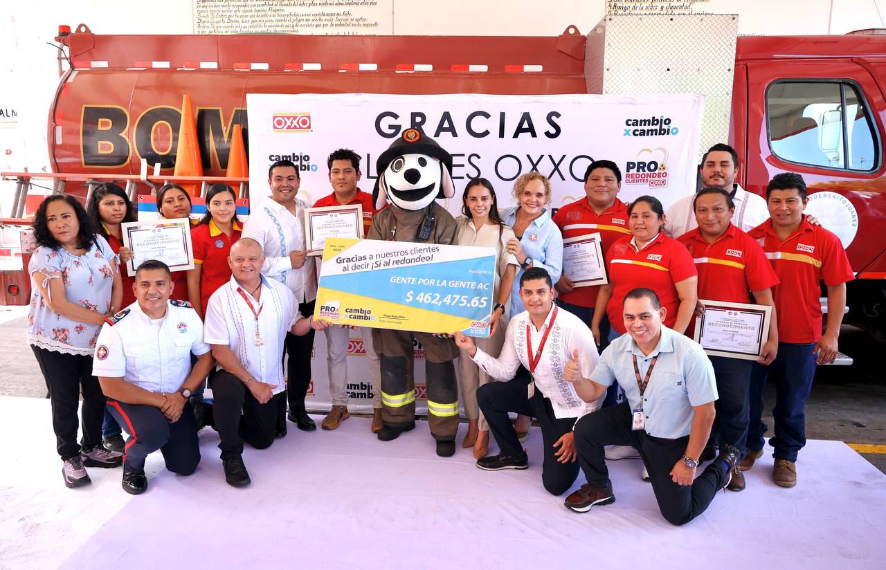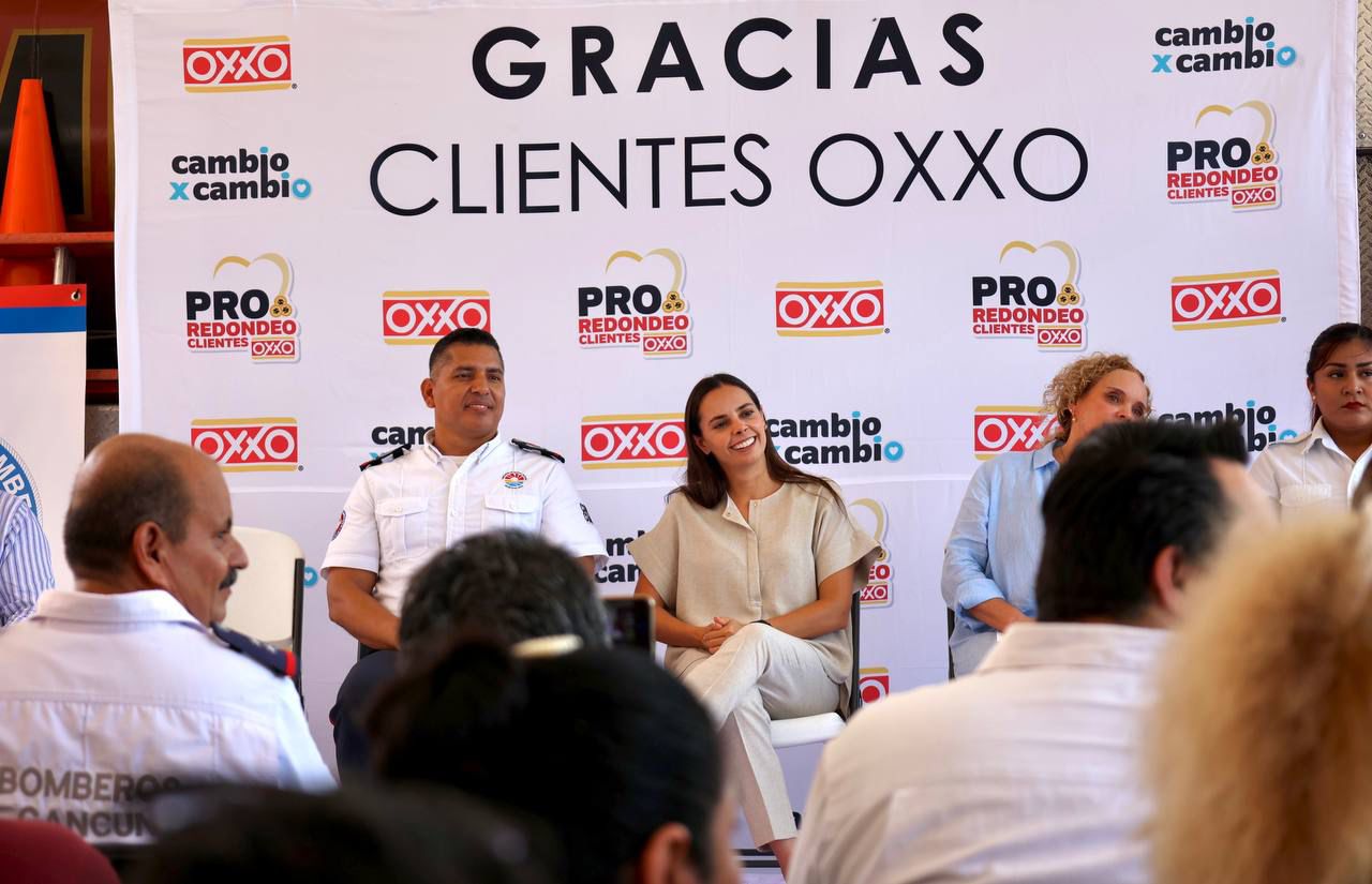 Cancún, Q. R., a 24 de julio de 2024.- La Presidenta Municipal, Ana Paty Peralta en compañía de autoridades administrativas del Heroico Cuerpo de Bomberos y su Patronato, recibieron por parte de la tienda comercial OXXO un donativo por 462 mil 475.65 pesos recaudado a través del programa de “Redondeo Clientes OXXO”, que tiene como propósito crear conciencia sobre las necesidades de grupos vulnerables y servir como un canal de recaudación de fondos para organizaciones, asociaciones e instituciones.