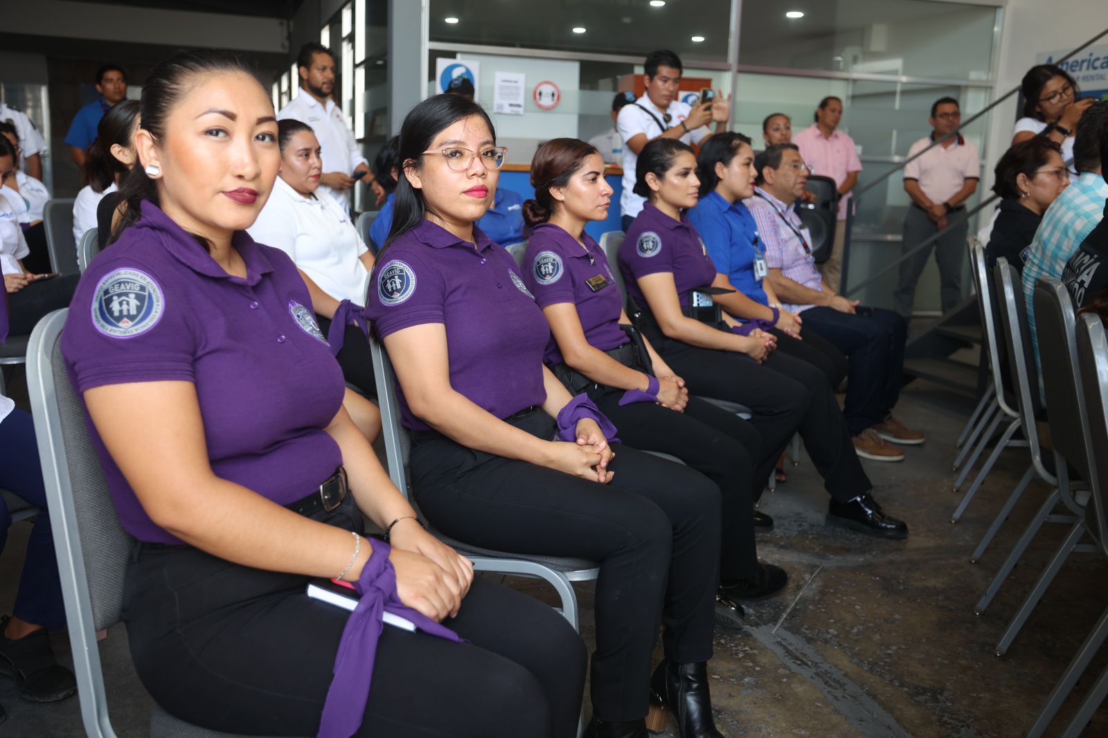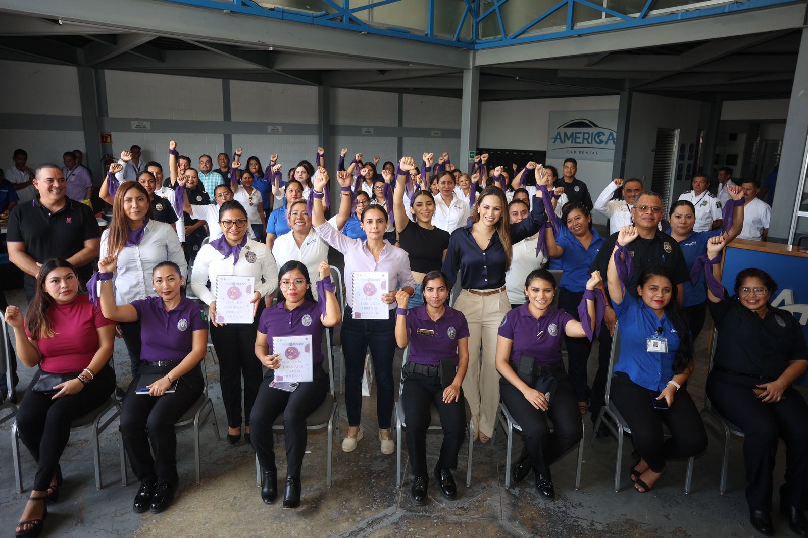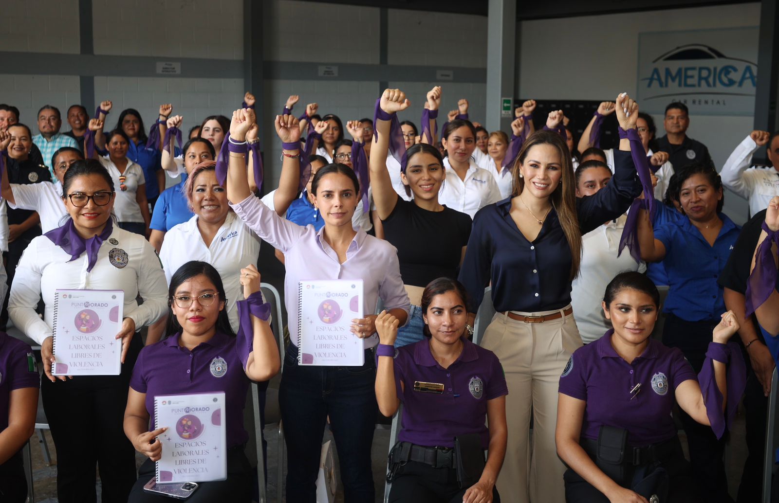 En el evento estuvieron presentes también: el secretario de Seguridad Pública y Tránsito, Pablo Mathey Cruz; la titular de la Fiscalía Especializada en Delitos contra la Mujer y por Razones de Género, Reyna Gabriela Pasarón Romero; la directora del Grupo Especializado en Atención a la Violencia Familiar y de Género. (GEAVIG), Adela Jiménez Izquierdo; y el presidente de America Car Rental, Rodrigo Solís Torres.