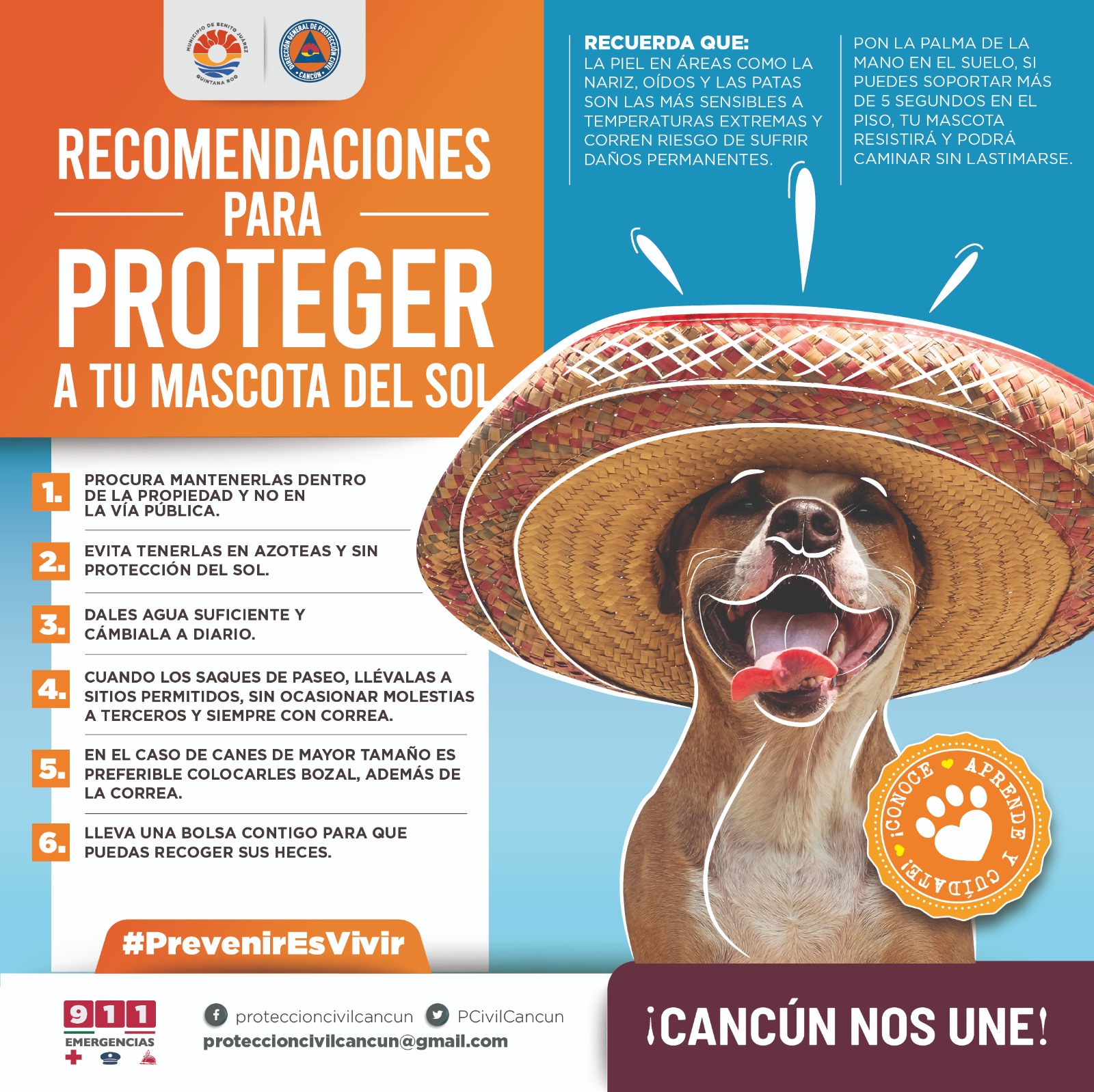 El director de la dependencia, Antonio Riveroll Ribbon, tal como ha insistido la Presidenta Municipal, Ana Paty Peralta, recomendó a las y los cancunenses, mantenerse hidratados; principalmente a adultos mayores y niños no exponerse a la luz solar por mucho tiempo; usar bloqueador solar cada tres horas; utilizar gorra, sombreros y sombrillas para protegerse del sol, así como refugiarse en lugares frescos para evitar que el cuerpo resienta la temperatura calurosa.