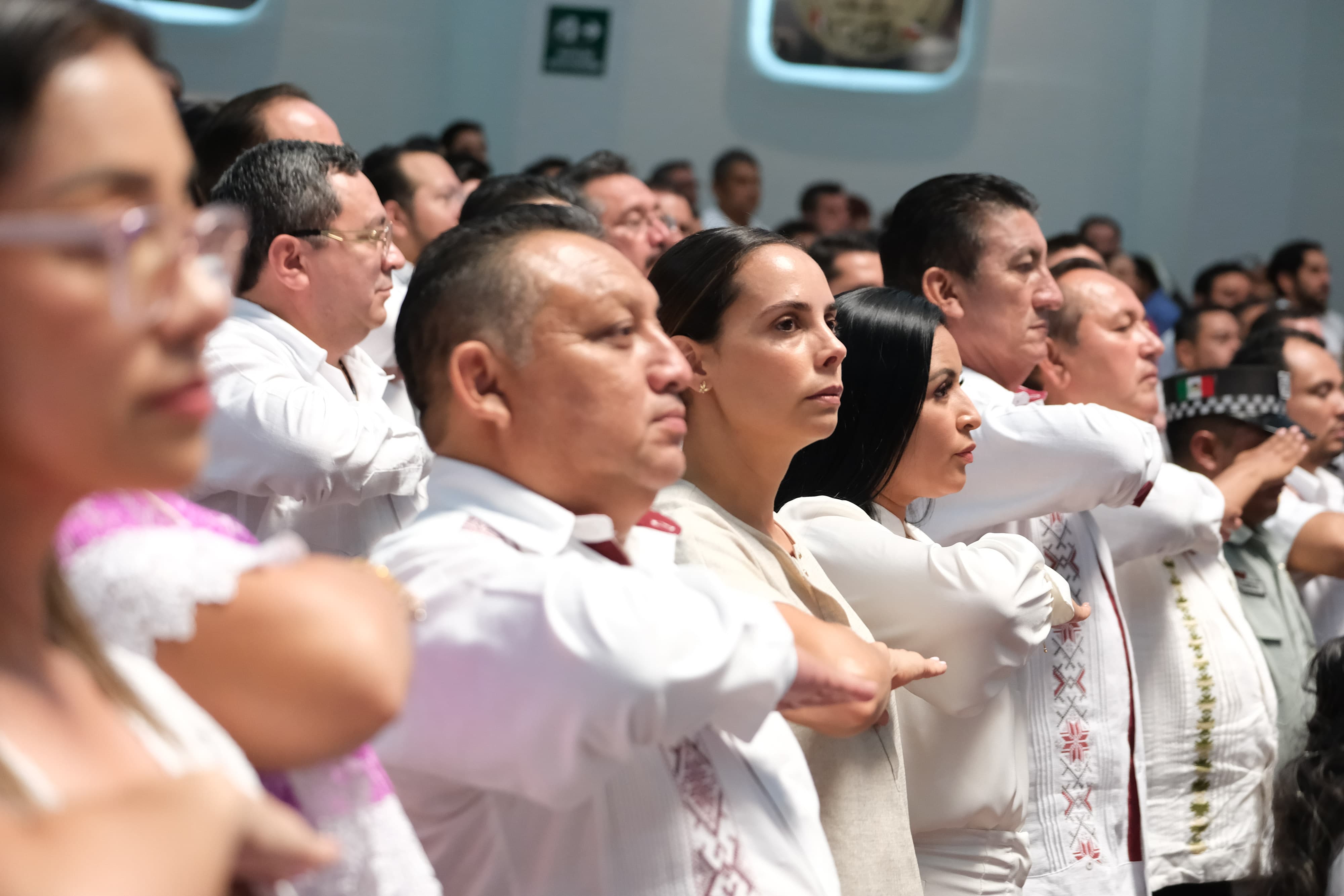 La Gobernadora estuvo acompañada del Magistrado, Heyden José Cebada Rivas, presidente del Tribunal Superior de Justicia y del Consejo de la Judicatura del Estado de Quintana Roo, así como las y los diputados, presidentes y presidentas municipales, las fuerzas federales, entre otros funcionarios.