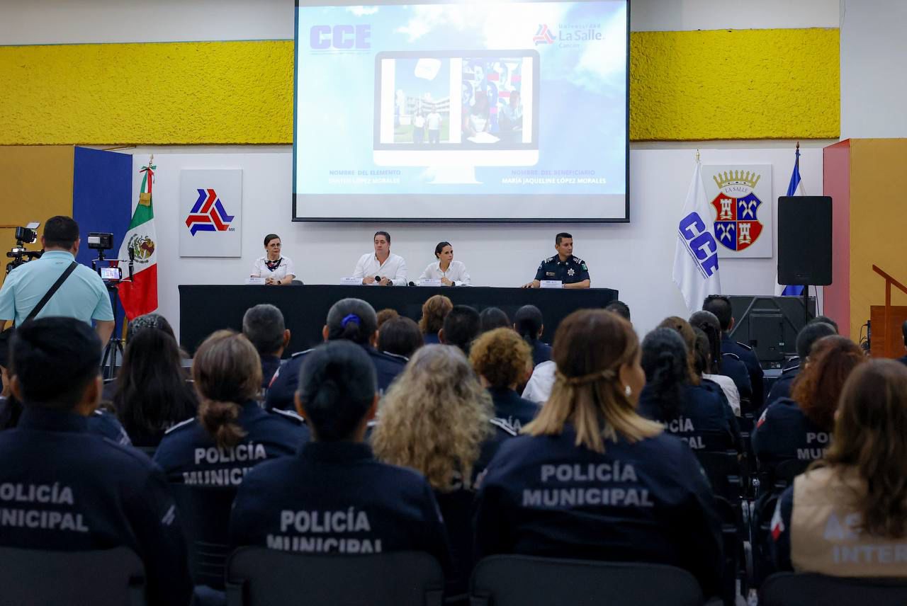 En el marco de esta misma conmemoración, por segundo año consecutivo, Ana Paty Peralta, junto a representantes del Consejo Coordinador Empresarial del Caribe (CCE) y la Universidad La Salle Cancún, anunciaron la próxima entrega de cinco becas al 100 por ciento a hijas e hijos de policías para el ciclo escolar 2024 – 2025, en esa casa de estudios, que brindará a los jóvenes una calidad educativa para un futuro próspero y seguro.