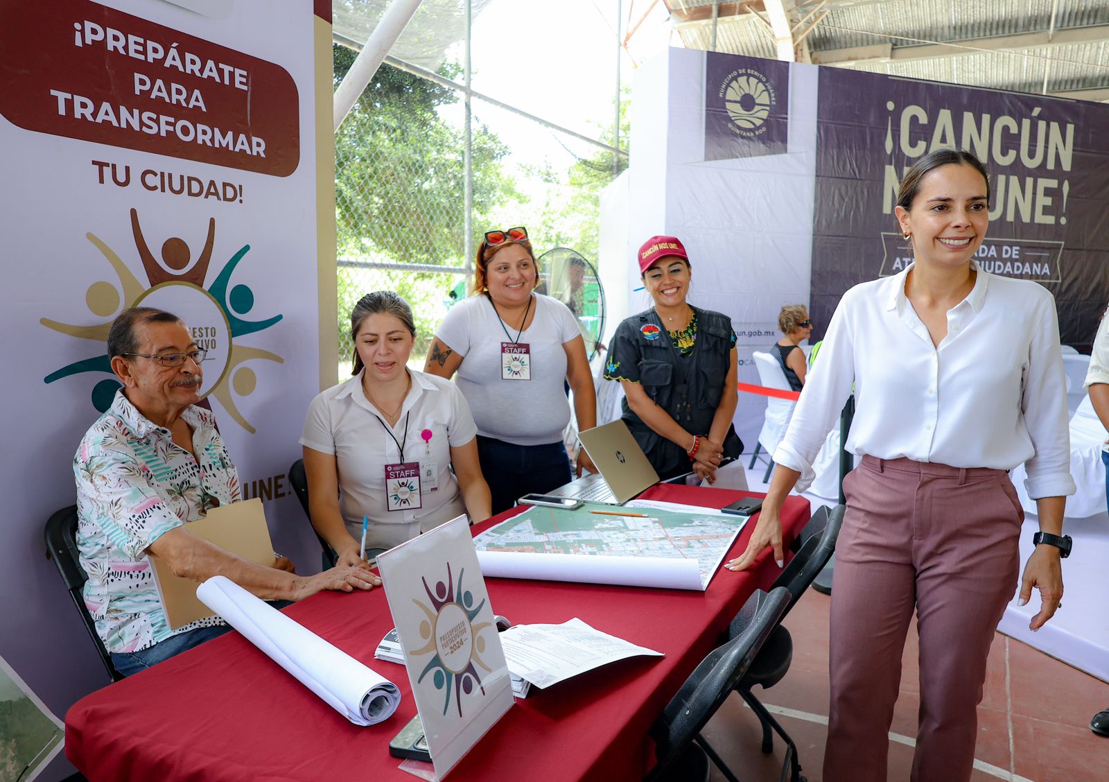 Cancún, Q. R., a 22 de agosto de 2024.- Al ser una prioridad el atender a más cancunenses en diversos rubros, la Presidenta Municipal, Ana Paty Peralta, destacó la suma de servicios e información de dos nuevos módulos en la Jornada de Atención Ciudadana “¡Cancún nos une!” realizada en la Supermanzana 60, para trámite de Pensión para Adultas Mayores de la Secretaría del Bienestar y registro de proyectos para el Presupuesto Participativo 2024.