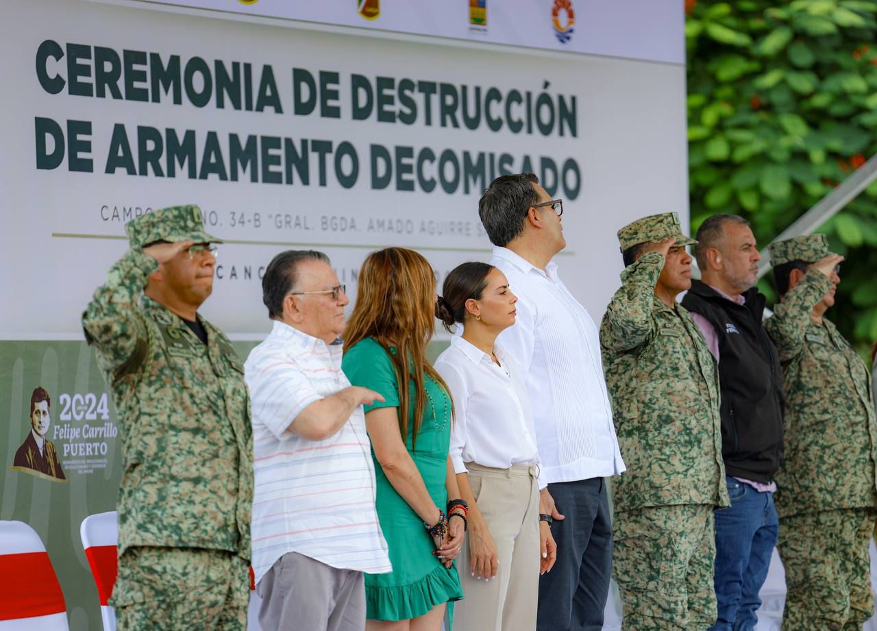 Por su parte, la Gobernadora del Estado, Mara Lezama señaló que con esta destrucción de armas, se va en un camino correcto, el objetivo es avanzar en la estrategia de construcción de paz, cada arma que sale de circulación, significan vidas que se van a poder salvar y proteger en un ambiente de paz.