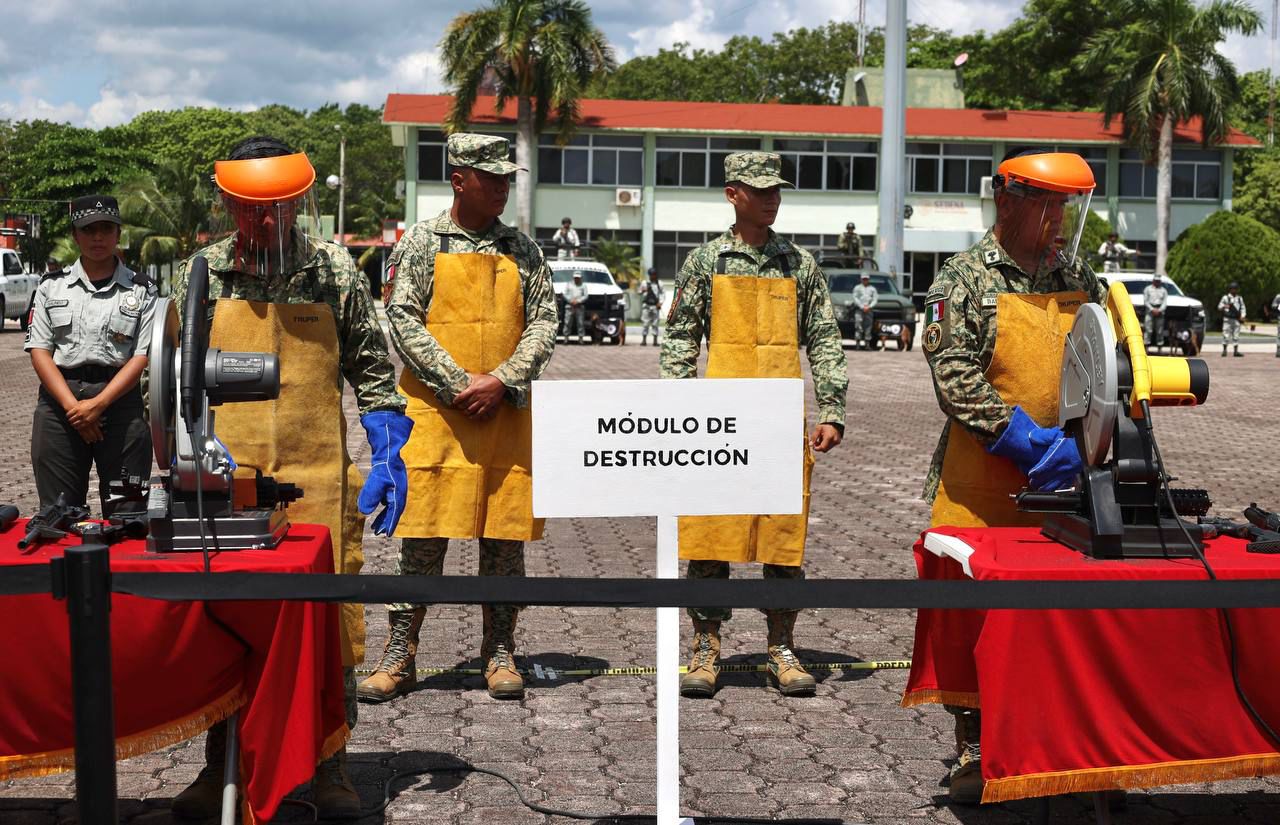 Finalmente, informó que las armas que se destruyeron fueron aseguradas gracias al trabajo coordinado del Ejército Mexicano, Armada de México, Guardia Nacional, Secretaría de Seguridad Ciudadana del Estado de Quintana Roo; así como de los policías municipales, y la participación de las fiscalías generales del estado y de la República.