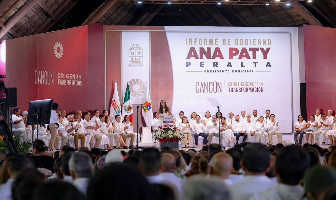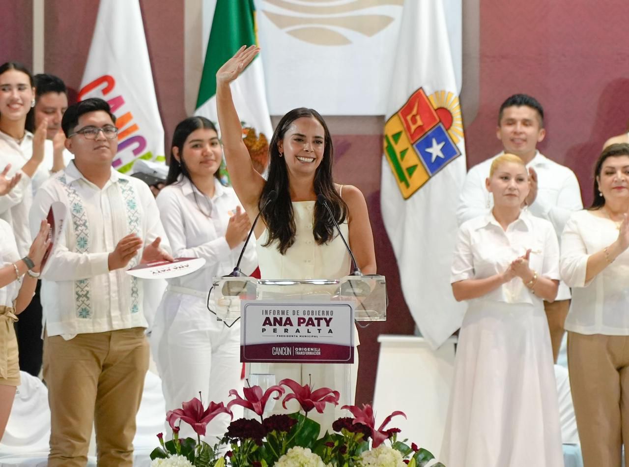 Cancún, Q. R., a 17 de septiembre de 2024.- “Hemos logrado mucho, pero el camino hacia el futuro apenas comienza. Ha llegado el momento para mí de dar los siguientes pasos, de llevar a Cancún al Segundo Piso de la Transformación, de la mano de la gobernadora Mara Lezama y la presidenta Claudia Sheinbaum, pero sobre todo en equipo, siempre, con ustedes los cancunenses”, aseguró la Presidenta Municipal, Ana Paty Peralta, al compartir con los cancunenses los resultados de los últimos tres años de histórica transformación que ha vivido la ciudad.