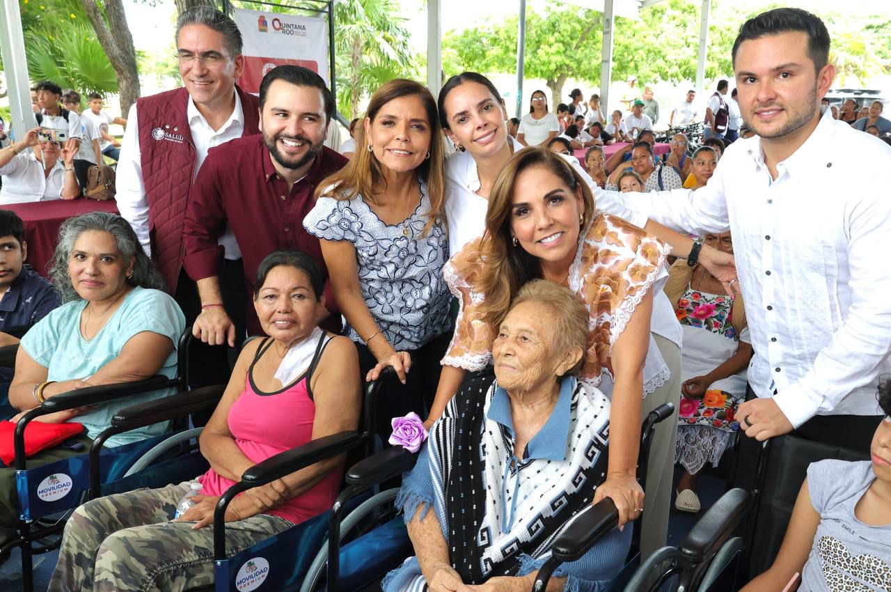 Durante el recorrido, Ana Paty Peralta, Mara Lezama; así como el secretario de Bienestar de Quintana Roo, Pablo Bustamante Beltrán y el secretario de Salud del Estado, Flavio Carlos Rosado, entregaron apoyos funcionales como sillas de ruedas, bastones, andaderas, tinacos, pintura, muletas, bicicletas y triciclos, a fin de que las familias cancunenses tengan una mejor calidad de vida.