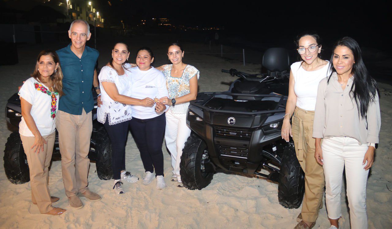 Cancún, Q. R., a 05 de octubre de 2024.- Al ser Benito Juárez la segunda zona con mayor anidación de tortugas marinas en el estado, La Presidenta Municipal, Ana Paty Peralta y la gobernadora Mara Lezama, entregaron vehículos y equipamiento a la Dirección General de Ecología, para fortalecer el trabajo del programa “Protección de Tortugas Marinas”.
