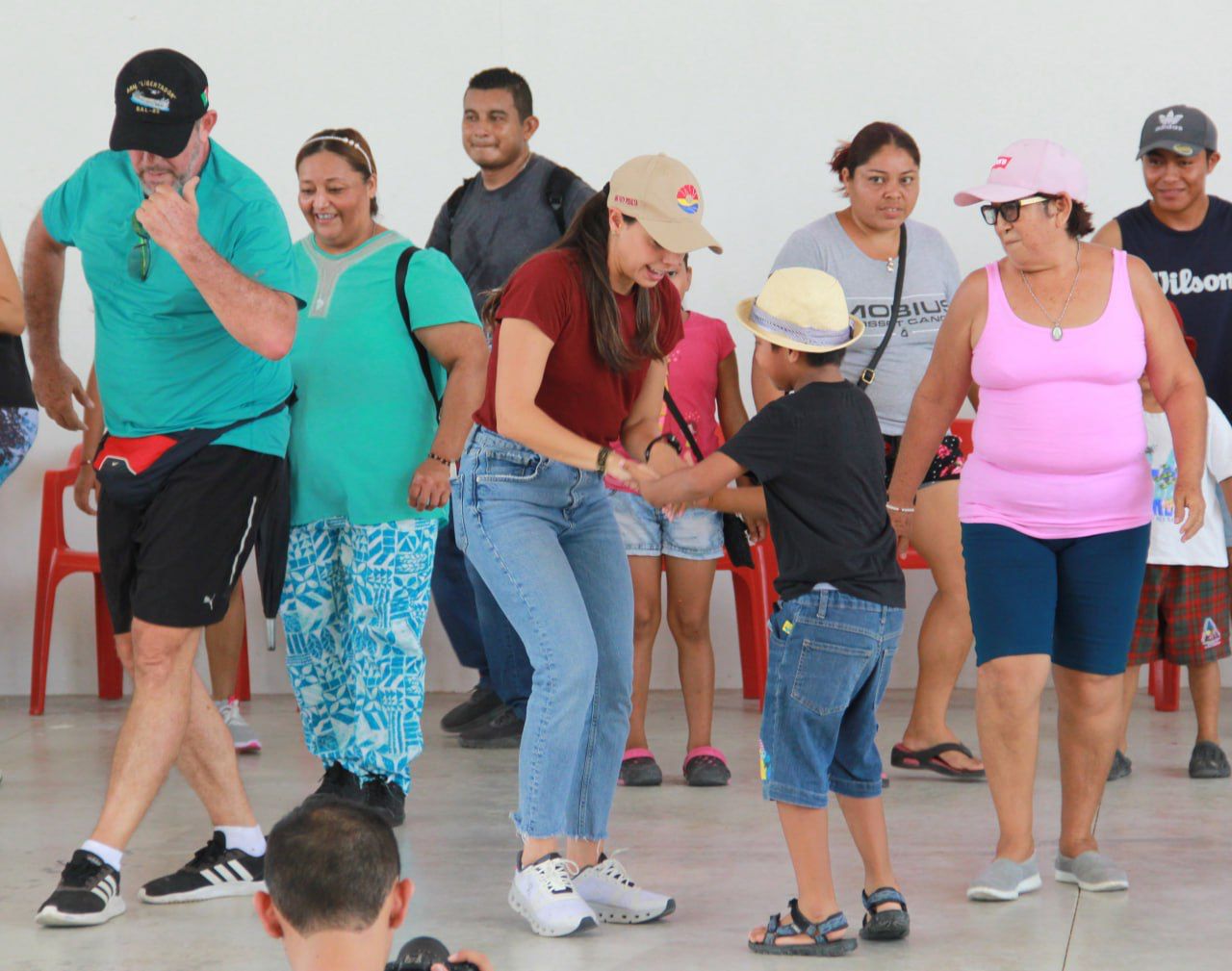ambiente; y al ritmo de música salsa y cumbia, bailó con las familias que la
