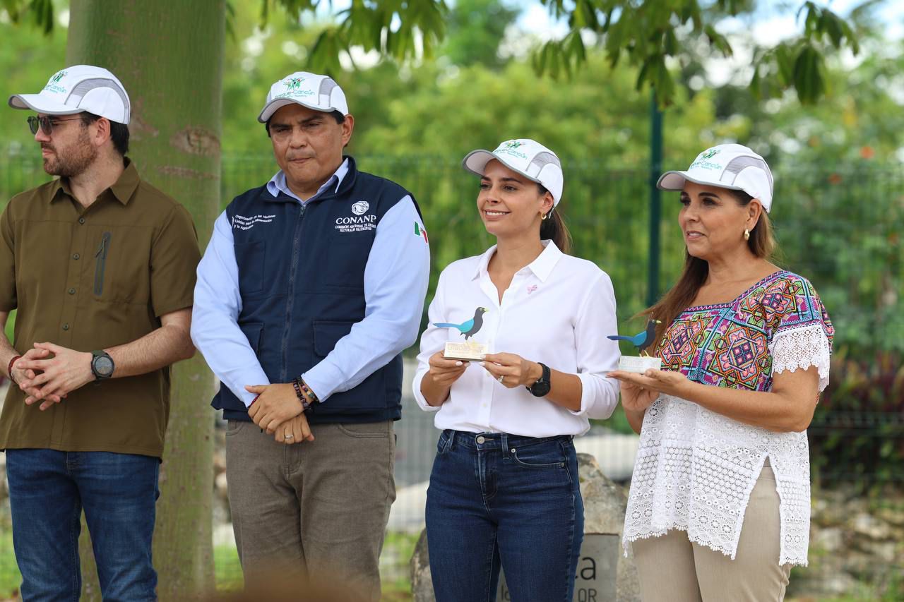 Como parte del evento, de manos del director del Parque Cancún, César Barrios, la Presidenta Municipal recibió un reconocimiento que representa el ave emblemática de ahí, llamada chara, por su apoyo para la introducción de la luz y asignación de ocho colaboradores en esta administración que ayudarán al cuidado de la jardinería.