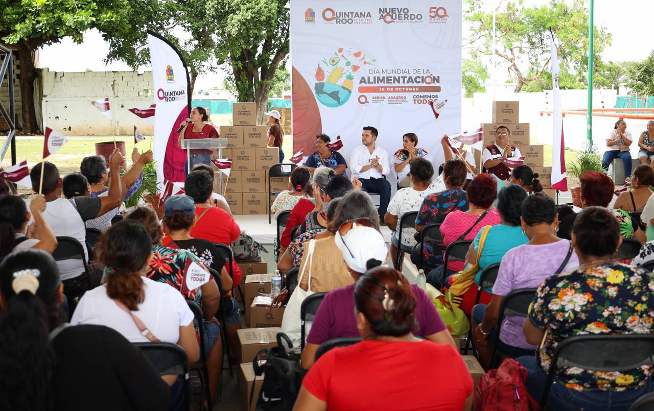 Cancún, Q. R., a 16 de octubre de 2024.- En el marco del Día Mundial de la Alimentación, la Presidenta Municipal, Ana Paty Peralta, constató que 500 familias benitojuarenses fueron beneficiadas con un apoyo alimentario por parte de la gobernadora, Mara Lezama, para erradicar la pobreza e impulsar una vida digna a todos los quintanarroenses.