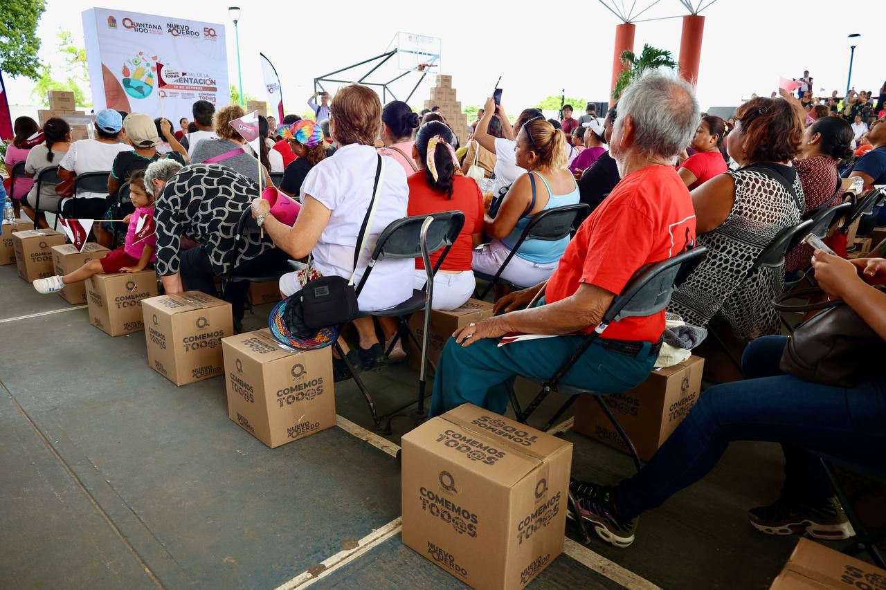 También, el titular de la Secretaría de Bienestar de Quintana Roo, Pablo Bustamante Beltrán, detalló que es el primer programa alimentario que llega a las familias de manera directa y gratuita, los cuales están garantizados para que cada año exista un incremento en beneficiarios y el número de apoyos, para que el bienestar crezca en atención a las causas sociales.