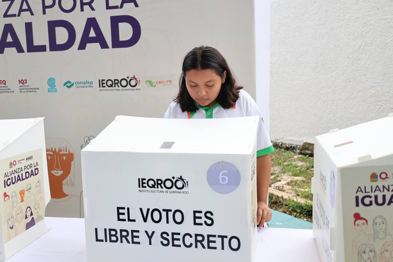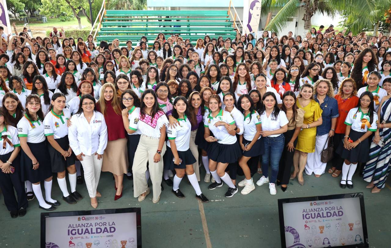 Cancún, Q. R., a 17 de octubre de 2024.- En el marco del 71 Aniversario del Voto de la Mujer en México, y con el objetivo de fomentar la cultura cívica y democrática, así como impulsar la participación política de las mujeres desde la adolescencia, la Presidenta Municipal, Ana Paty Peralta, atestiguó la inauguración del ejercicio “Alianza por la Igualdad, Nuestra Opinión Cuenta”, encabezado por la gobernadora Mara Lezama, donde 400 jóvenes mujeres integrantes del CECYTE II votaron para elegir a seis embajadoras que conformarán este proyecto.