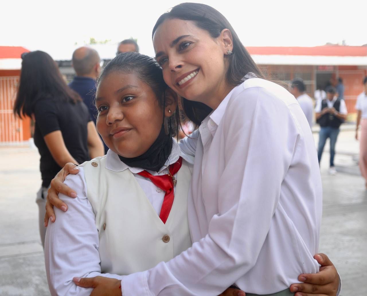 con los estudiantes quienes la recibieron con abrazos afectuosos desde la