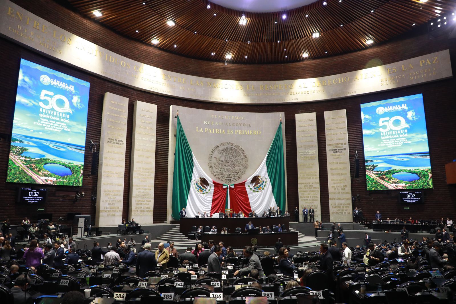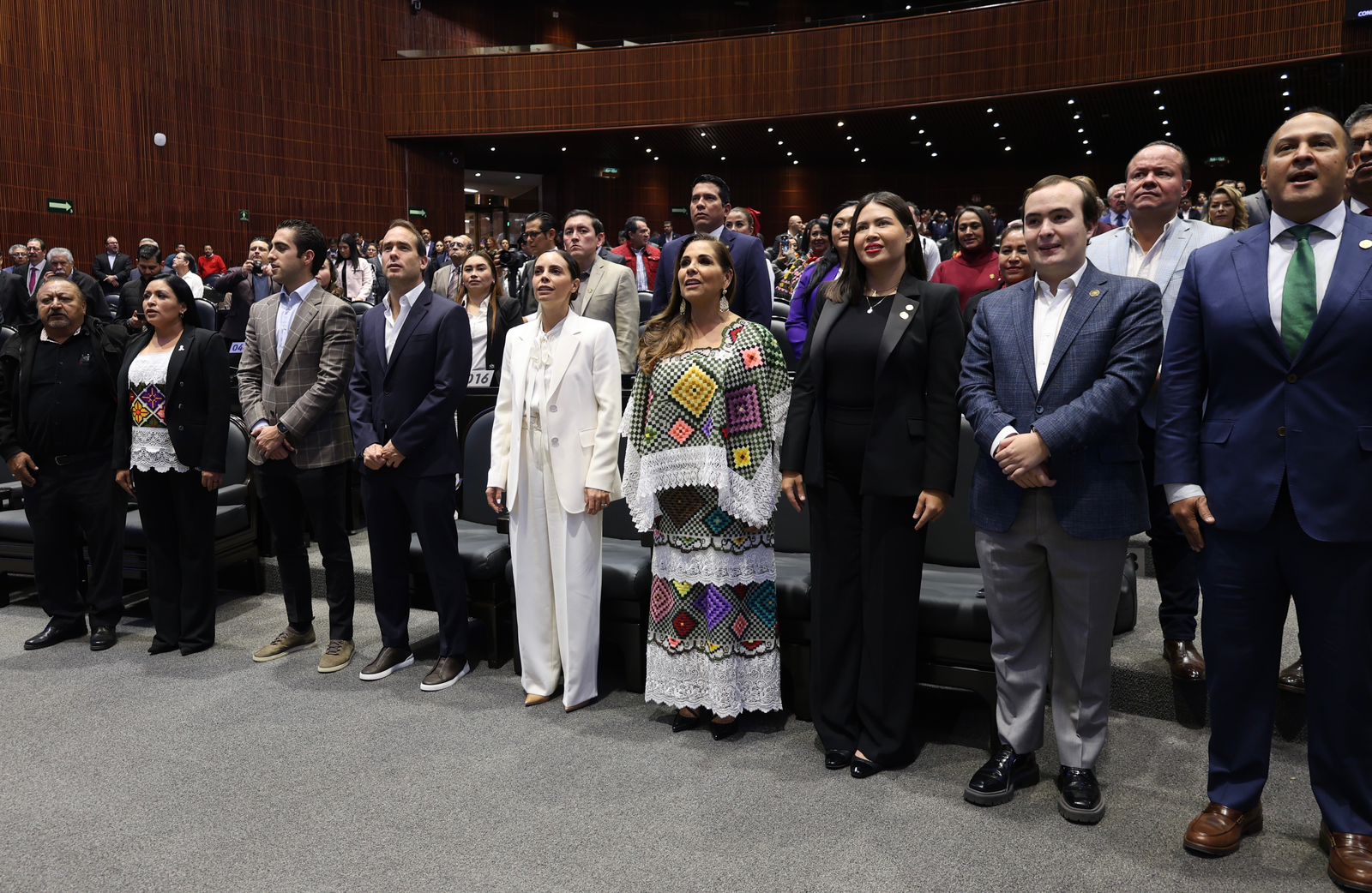 En su primera actividad, desde temprana hora, la alcaldesa cancunense estuvo presente en la Sesión Solemne con motivo de esa celebración, realizada en el Palacio Legislativo de San Lázaro, sede de la Cámara de Diputados y del Congreso de la Unión, a la que asistieron un total de 283 legisladoras y legisladores federales para recibir a la comitiva de autoridades quintanarroenses.