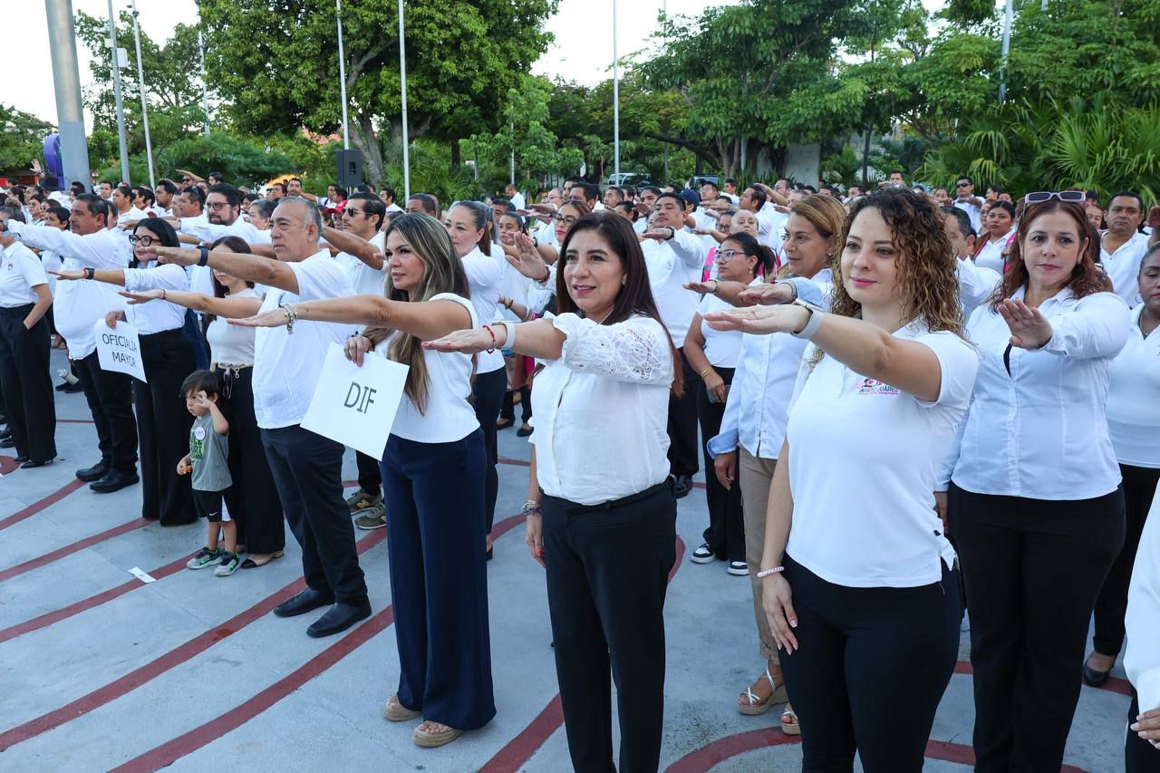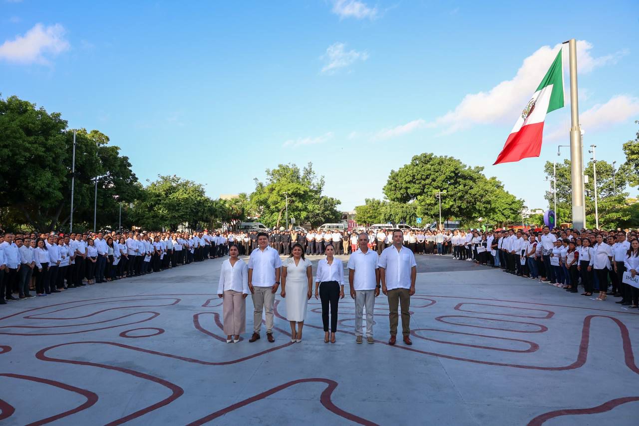 entonaron los himnos a Quintana Roo y Nacional Mexicano, con el apoyo de la