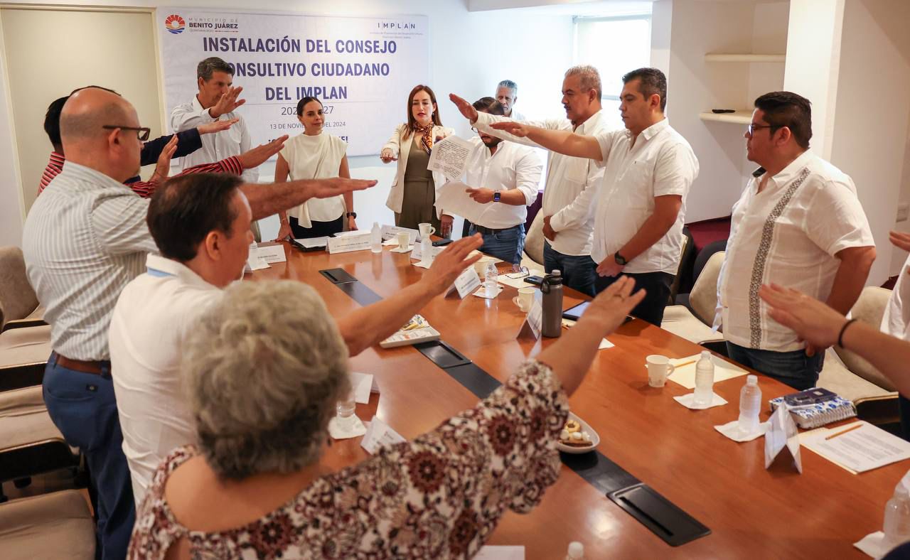 Cancún, Q. R., a 13 de noviembre de 2024.- La Presidenta Municipal, Ana Paty Peralta, fungió como invitada de honor a la toma de protesta e instalación del Consejo Consultivo Ciudadano del Instituto Municipal de Planeación de Desarrollo Urbano de Benito Juárez (IMPLAN), integrado por representantes de varios sectores sociales, a quienes agradeció el involucrarse para realizar proyectos en común para mejorar Cancún.