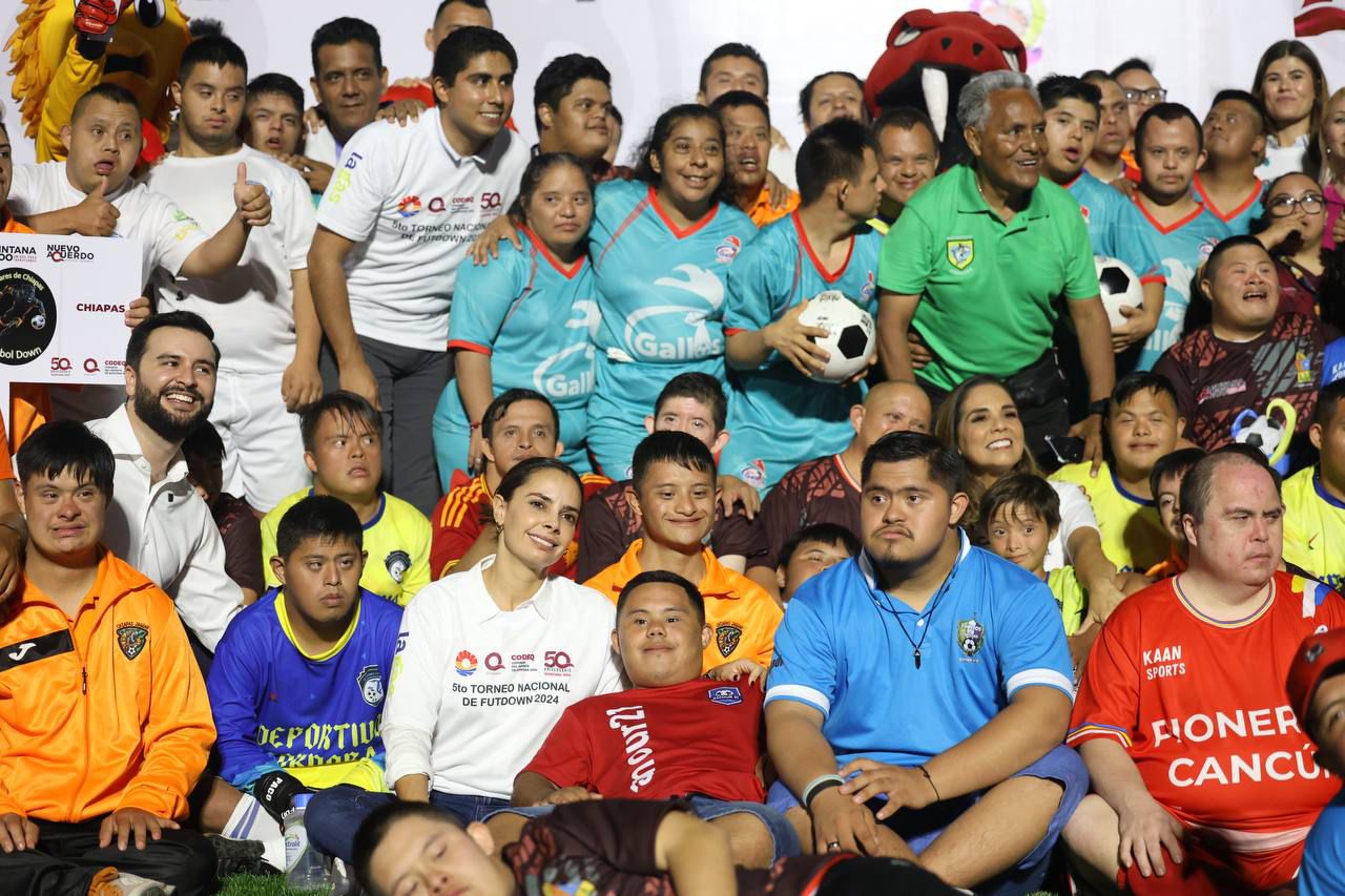 Luego de las palabras del presídium y el juramento deportivo que estuvo a cargo del jugador destacado del Club Fut Down Cancún, Jesús Antonio González, las autoridades estatales y municipales compartieron momentos de alegría con las y los deportistas.