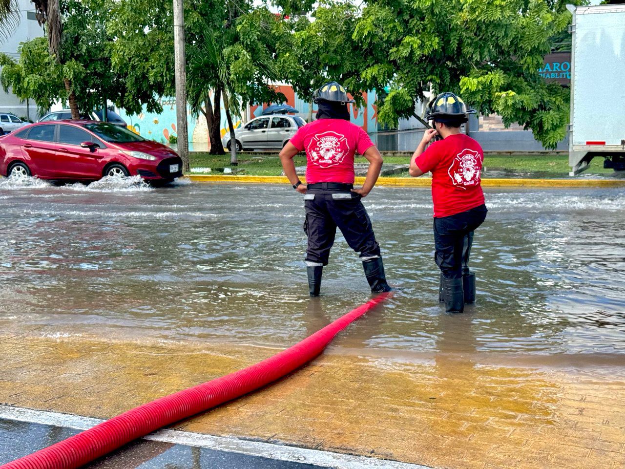 Para ello, el Heroico Cuerpo de Bomberos recorrió los puntos críticos de la ciudad, apoyando en la limpieza de alcantarillas, así como dando atención a un reporte de árbol caído y corto circuito causado por ramas de árboles, con un estado de fuerza de 43 elementos y 20 unidades para el servicio de la comunidad.