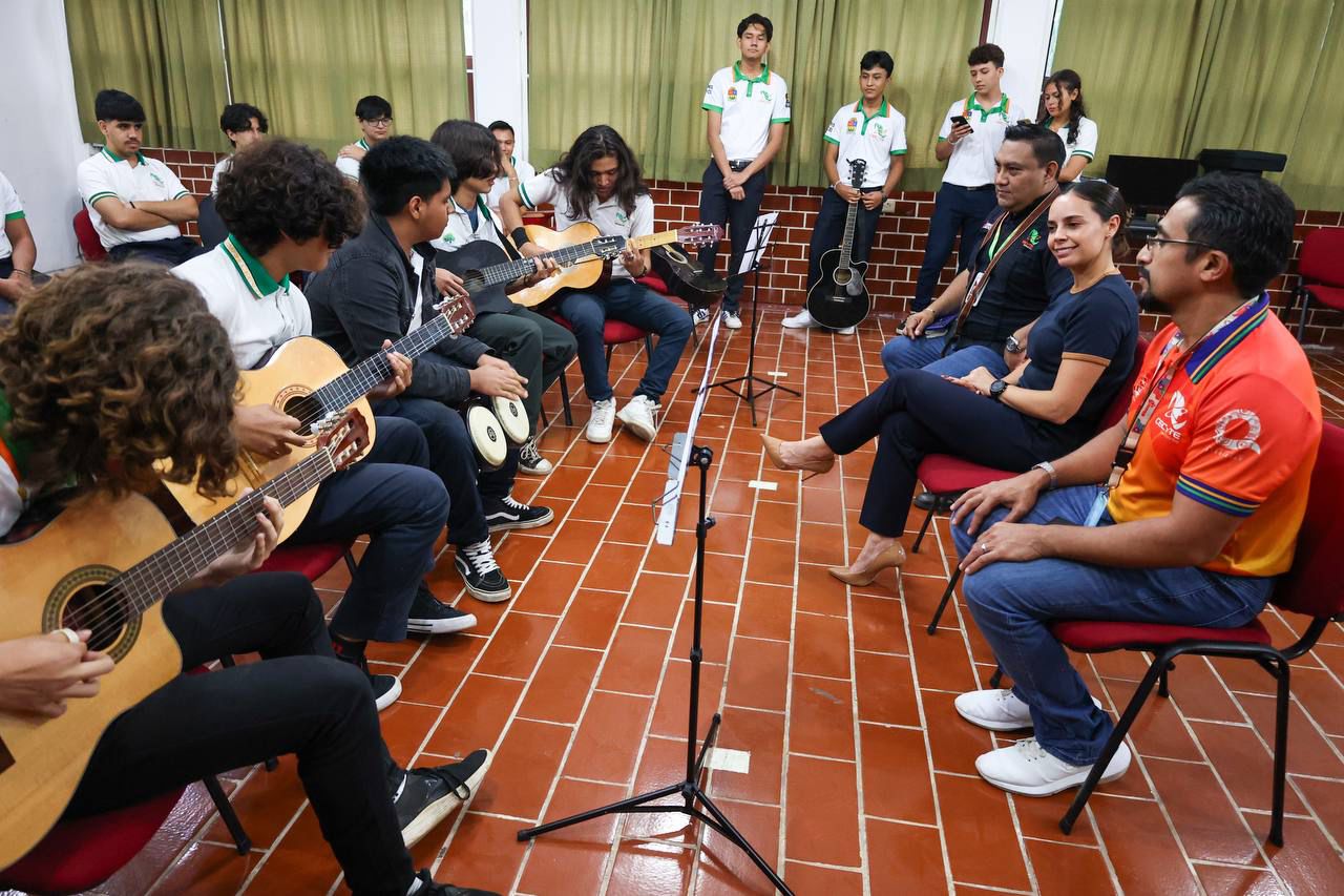 “Para mí, la música, el arte y la cultura son una prioridad, y vamos a seguir impulsándolos al máximo. Me encanta ver el talento que tienen; no lo dejen. Hoy les traemos más instrumentos para que continúen desarrollando su arte”, expresó Ana Paty Peralta ante los jóvenes, quienes compartieron piezas musicales en inglés y español como parte de su agradecimiento.