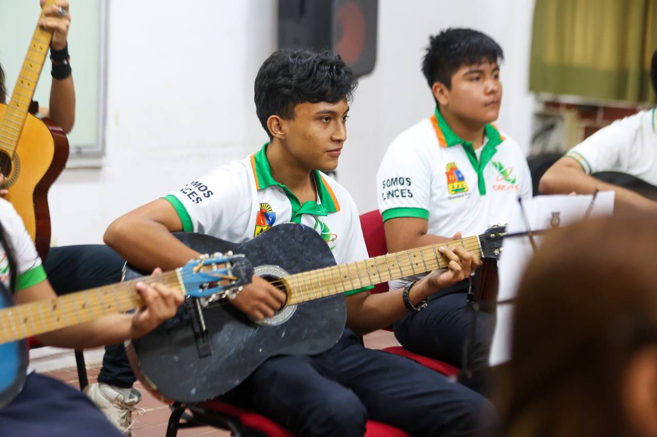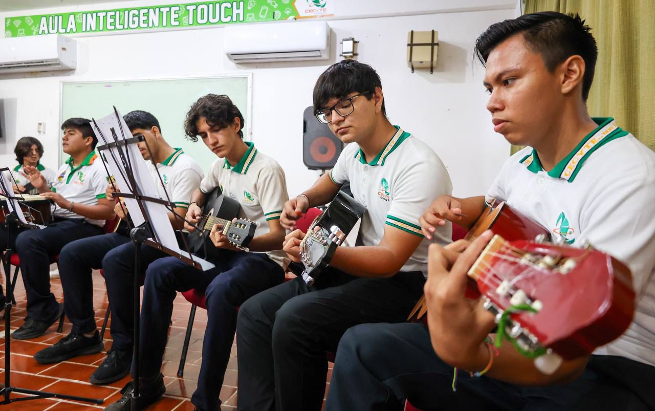 En el marco del Día Internacional del Músico, celebrado cada 22 de noviembre, la Alcaldesa visitó el plantel CECyTE Cancún II, donde constató el avance de los alumnos desde que, hace un año, donó instrumentos musicales al Club de Música de la institución, para fomentar el talento y la pasión artística entre los estudiantes.