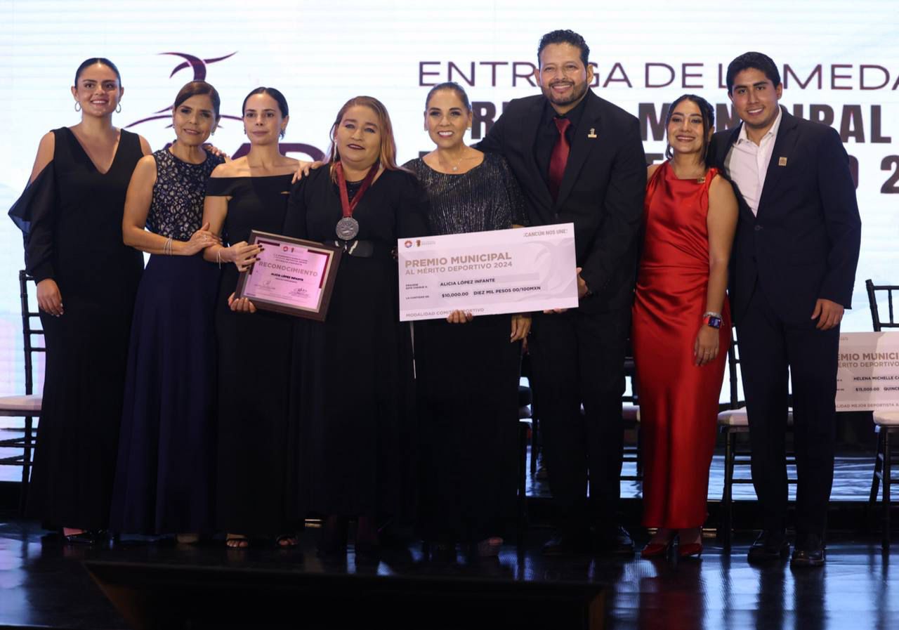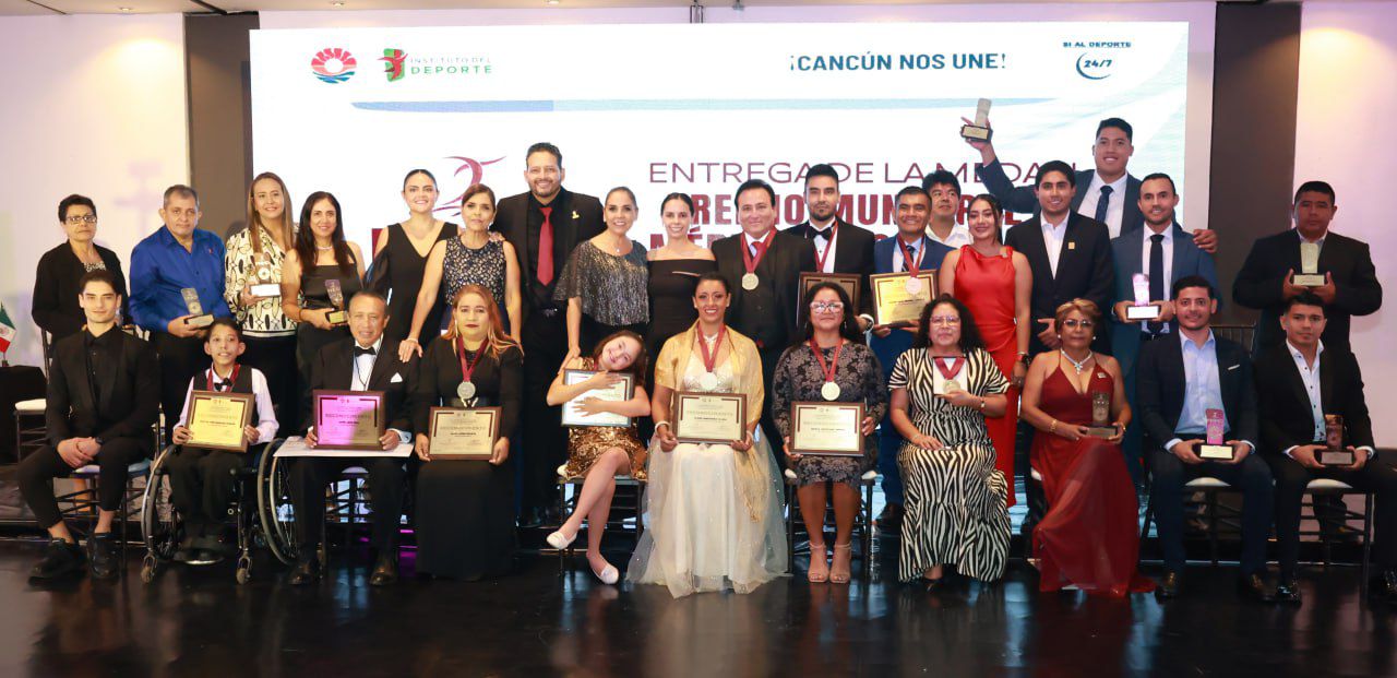 Cancún, Q. R., a 23 de noviembre de 2024.- El Premio Municipal al Mérito Deportivo en Benito Juárez se ha consolidado como la distinción más importante en el ámbito del deporte local y en esta edición de 2024, un total de 10 representantes en diferentes categorías, recibieron la presea de manos de la Presidenta Municipal, Ana Paty Peralta, por poner en alto a Cancún, brillar en los pódiums nacionales e internacionales, así como por impulsar la actividad física como herramienta para integración del tejido social y formar valores en la comunidad.