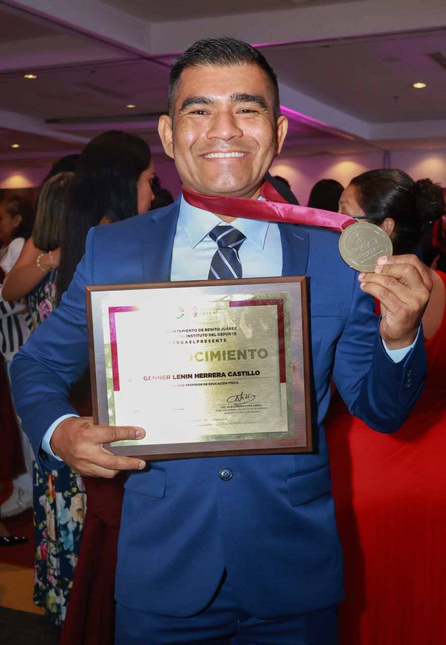 Por otro lado, Genner Lenin Herrera Castillo, docente de la plantilla de la primaria “Año del Centenario”, fue galardonado como Mejor Maestro de Educación Física, por su amplia trayectoria de más de dos décadas de vida dedicadas al desarrollo físico y formativo de los jóvenes en Cancún, además de seguir su preparación profesional, al grado de completar un diplomado en Desarrollo de Estrategias Digitales de Aprendizaje.